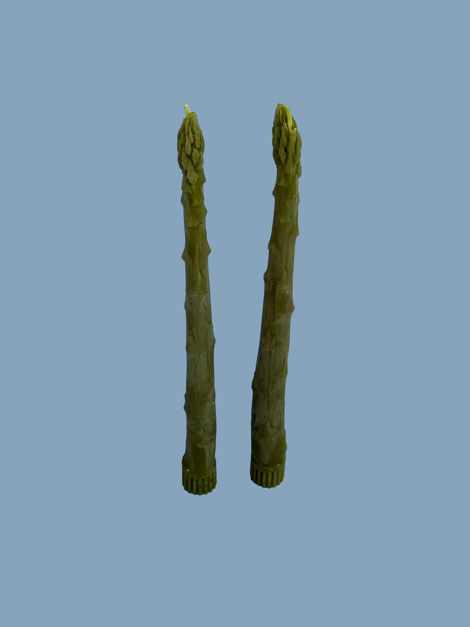 Set of 2 asparagus candle tapers featuring a stem wick.