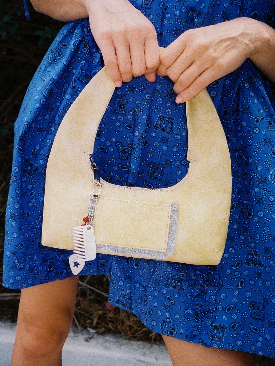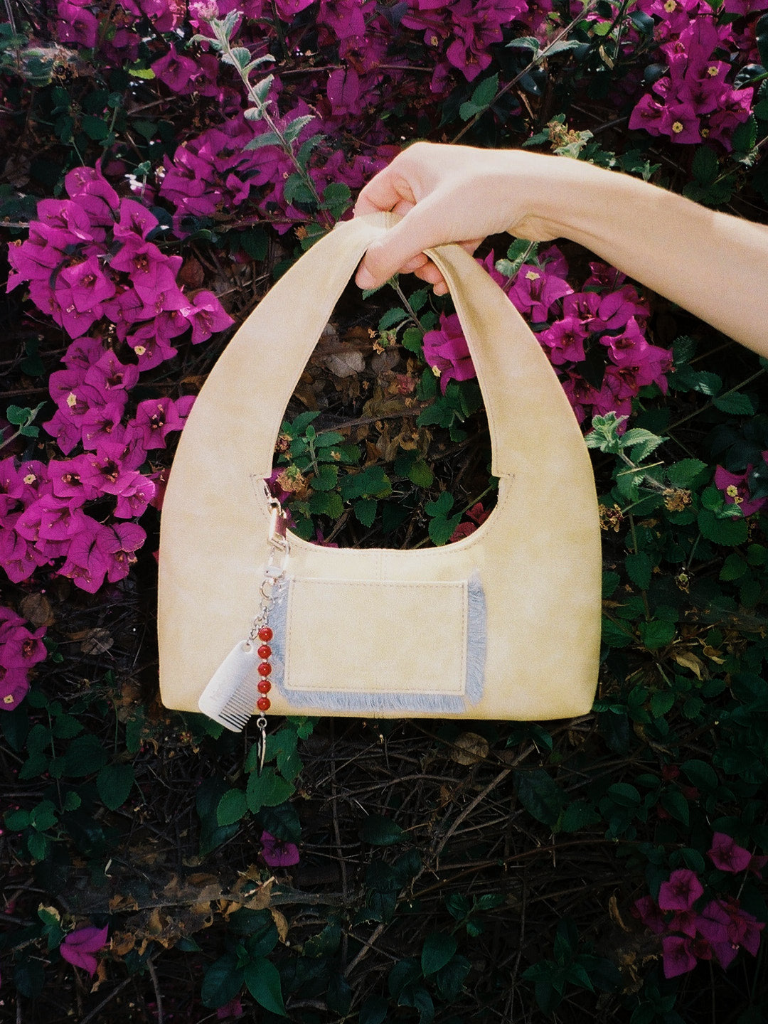Introducing the Baby Tina from Korean-based brand, Hieta—Mini version of Hieta's signature hobo bag, the Tina bag—made with a vegan leather and featured in a gorgeous worn-effect butter tone.