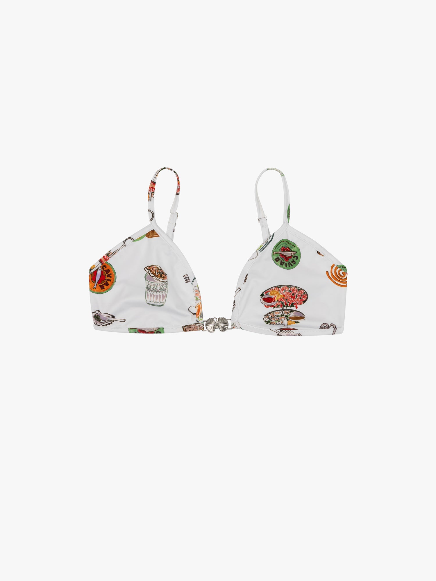 Bikini top in our signature Caviar Dreams print featuring adjustable straps and a metal shell detail at the center front.