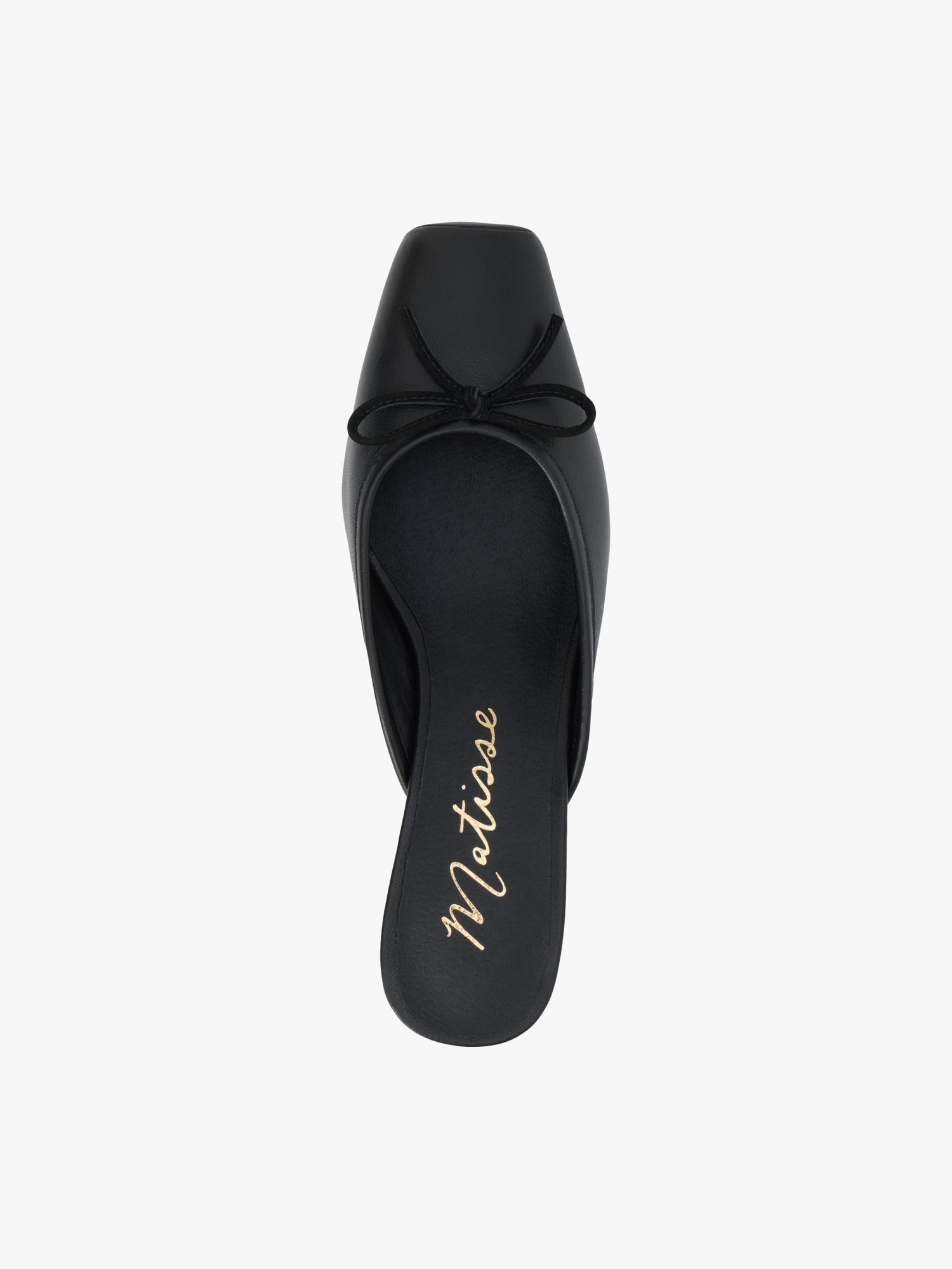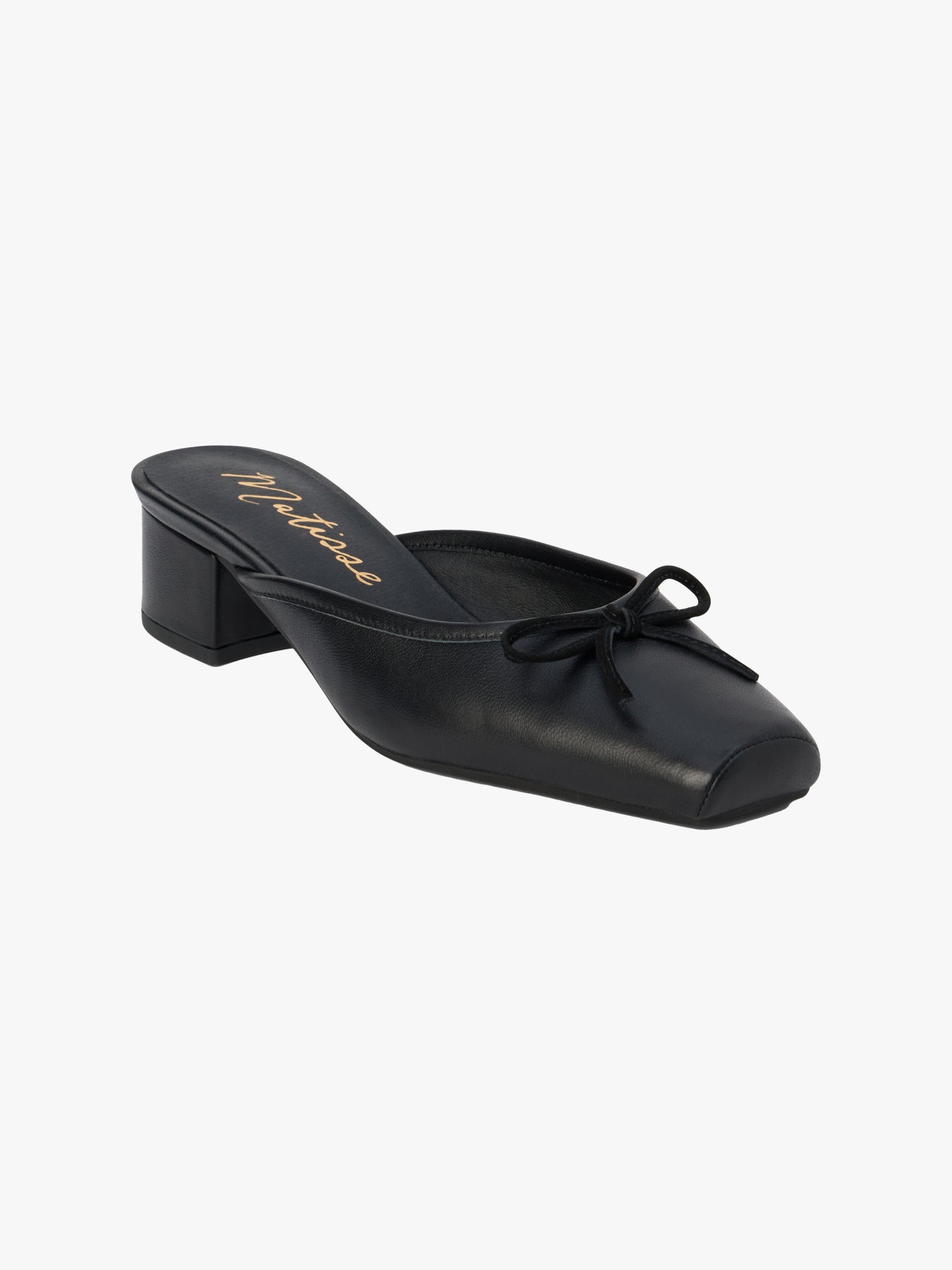 A chic mule with a kitten heel and an adorable bow detail. The perfect addition to dress up any outfit!