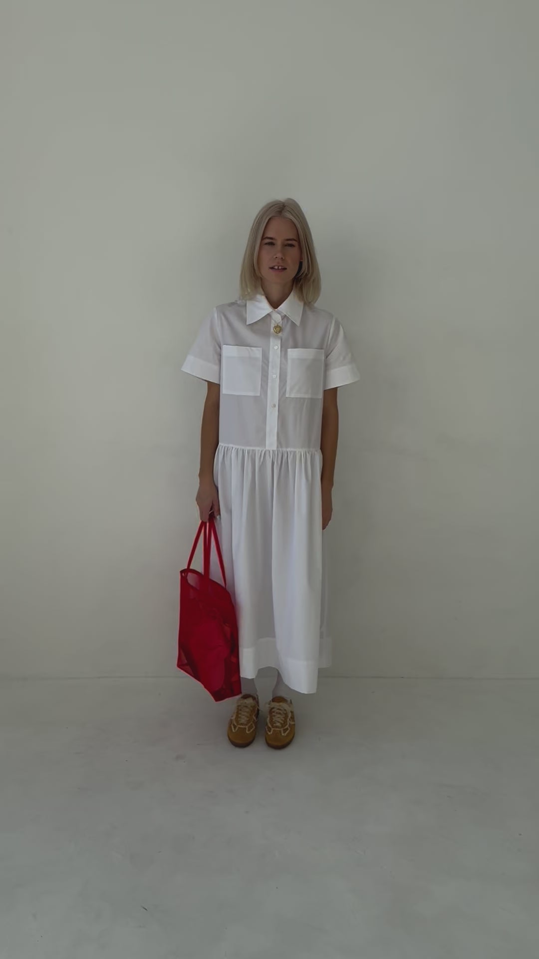 Meet your new go-to dress: this 100% cotton midi features a button-up bodice for that classic, relaxed vibe. With a loose, flowy fit, it’s effortlessly comfy and perfect for those easy-breezy days. For a more tailored look, we recommend sizing down!