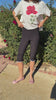 Meet the Bea Pedal Pushers: a fitted capri in a stretchy black ribbed fabric featuring a lace hem and an elasticized waist. Dress up with a fun top or dress down with a sweater or jacket.