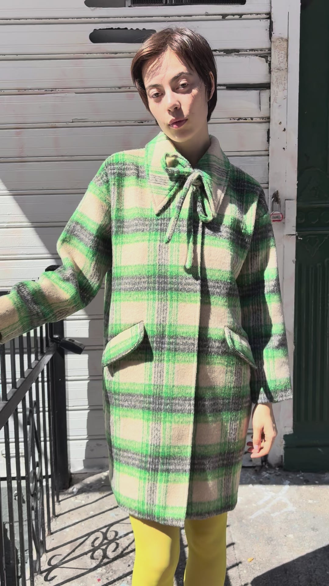 Introducing the Chelsea Coat: This medium-length trench coat is the perfect, cozy addition to your fall rotation. With its fuzzy texture, bow detail, and classic silhouette, it'll quickly become a staple in your closet.