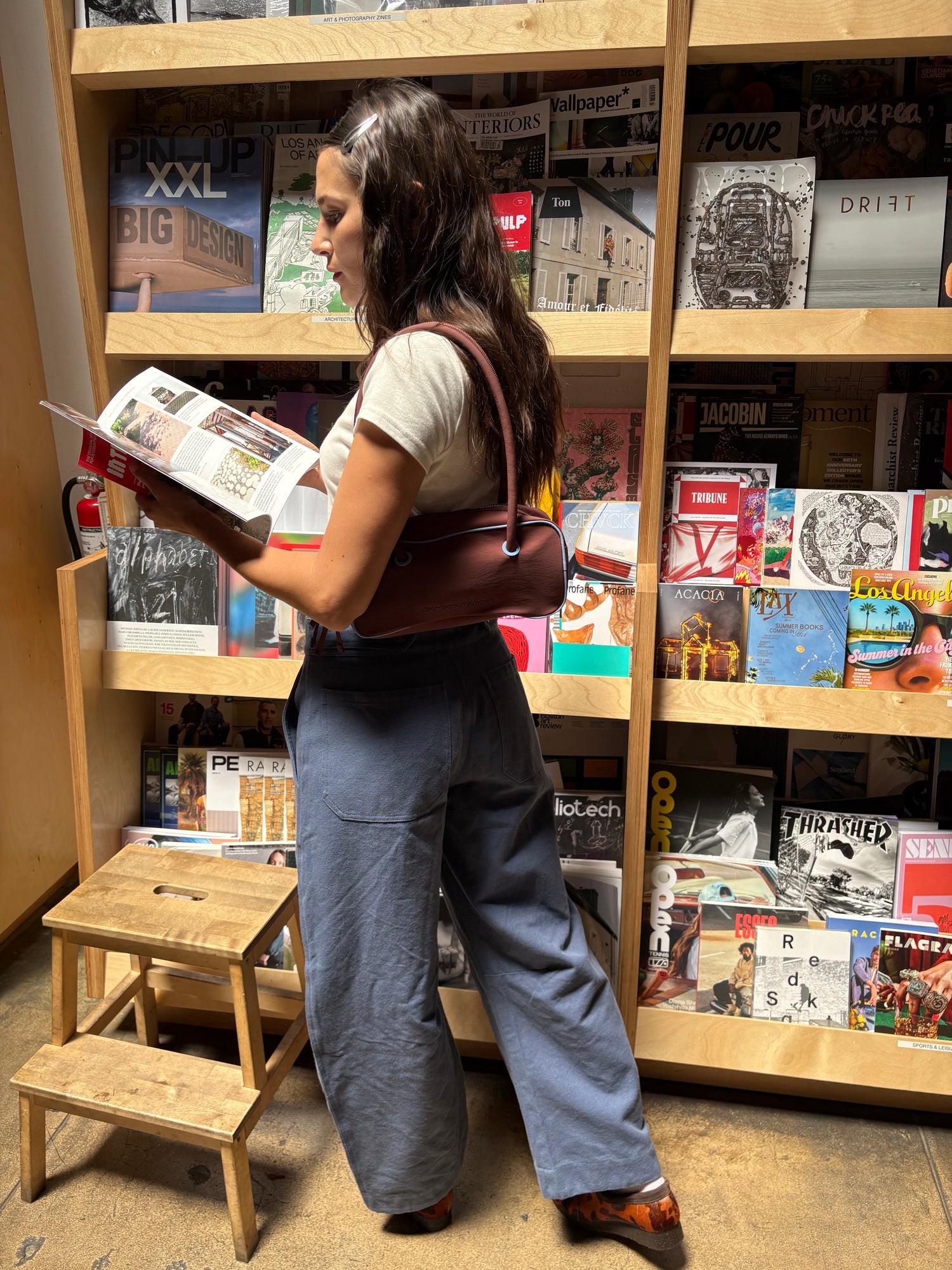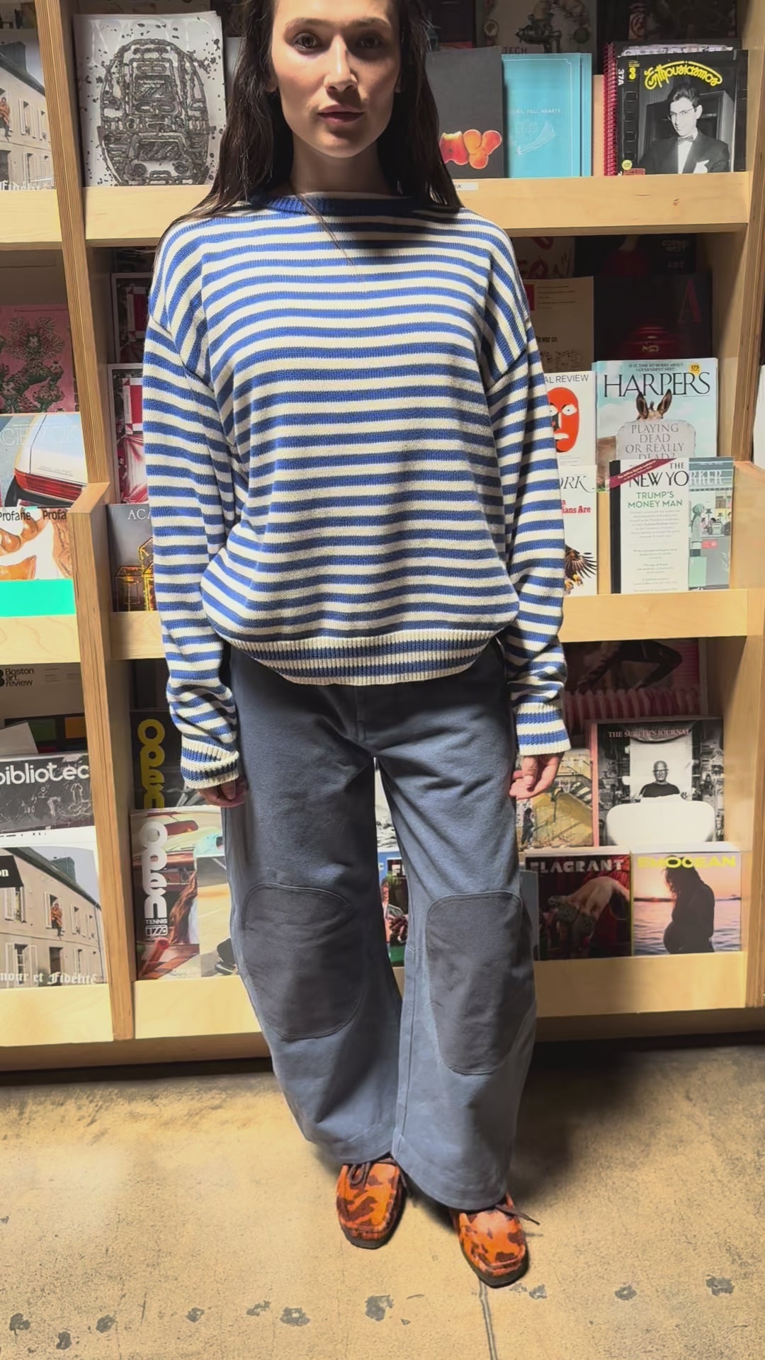 Introducing the Daphne Trouser from Sonderhaus. Barrel shape trouser featuring a zip closure and an extra button hole for an adjustable waist with decorative knee patches. Made out of 100% cotton canvas in a female owned factory.