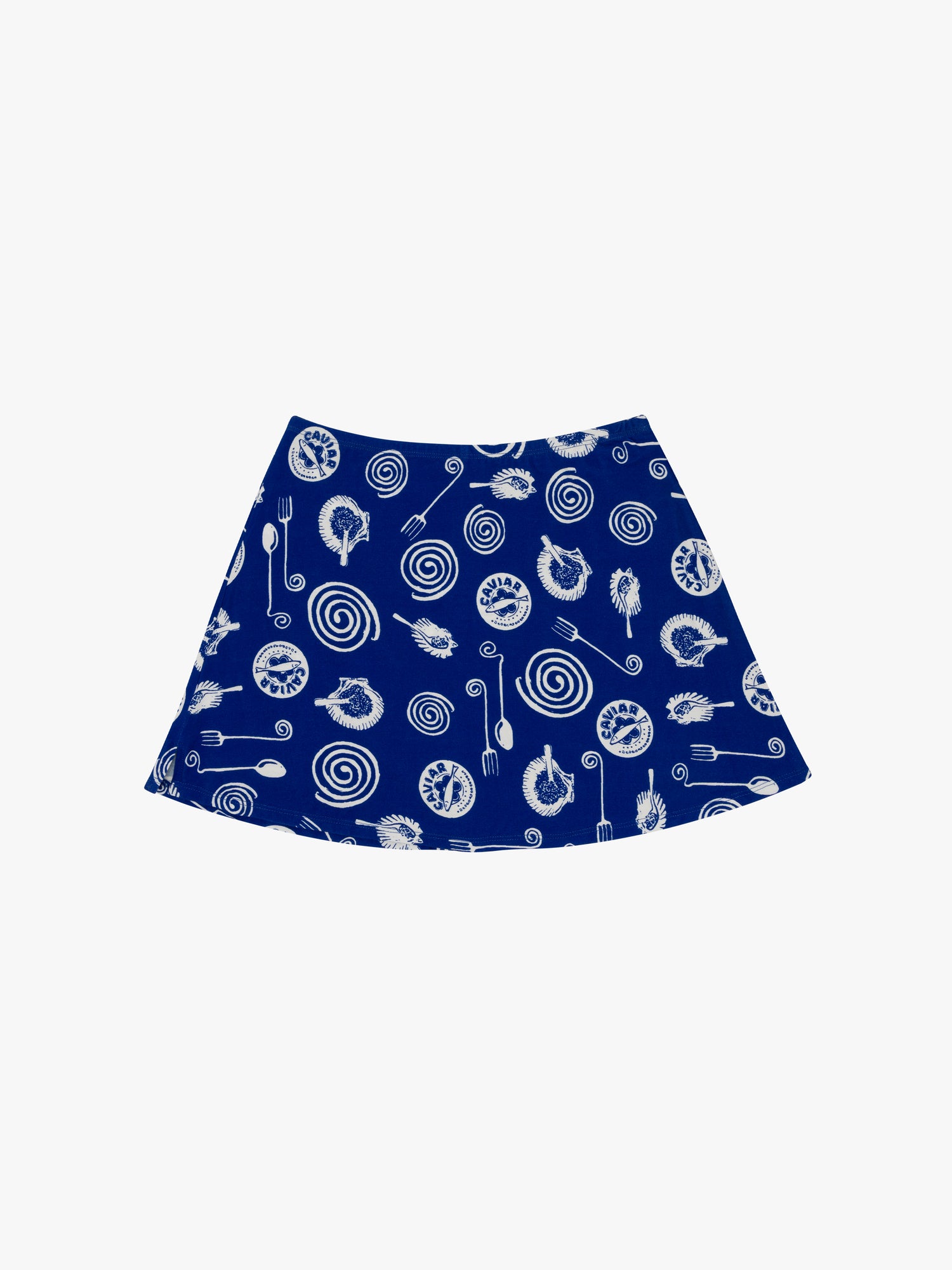 The Darcy Skort is a best selling mini skirt with a built in short. The high waisted skort is made with an elastic waistband and stretchy material for comfort and ease. Featured in our signature Caviar Dreams Blue print.