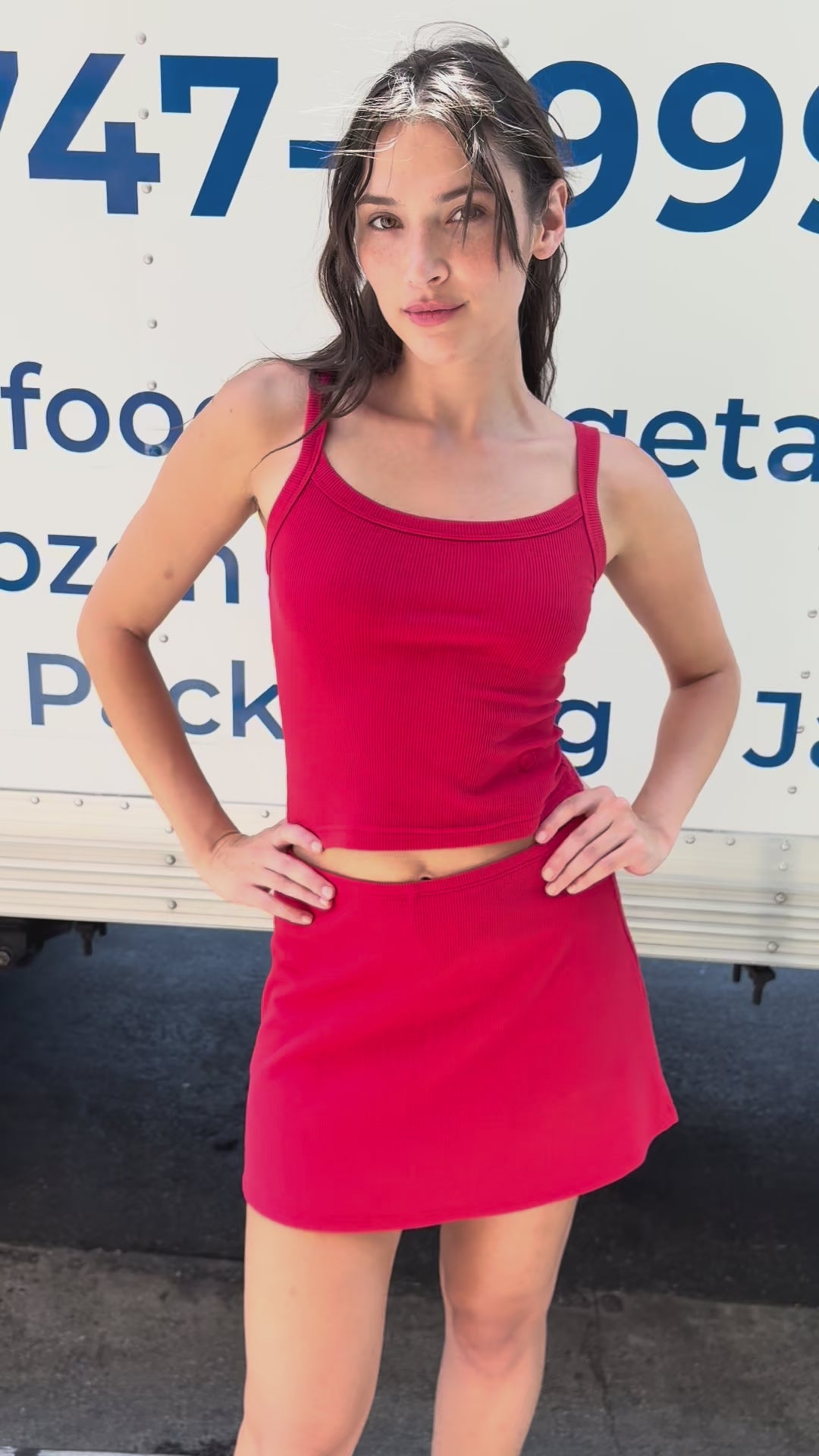 From the LSG Fall Basics collection the Darcy Skort is an ultra mini skirt with a built in short and an elastic waist band. Made in a soft stretch rib fabric. Runs true to size. Pair with our Red Harley Tank for the full look.