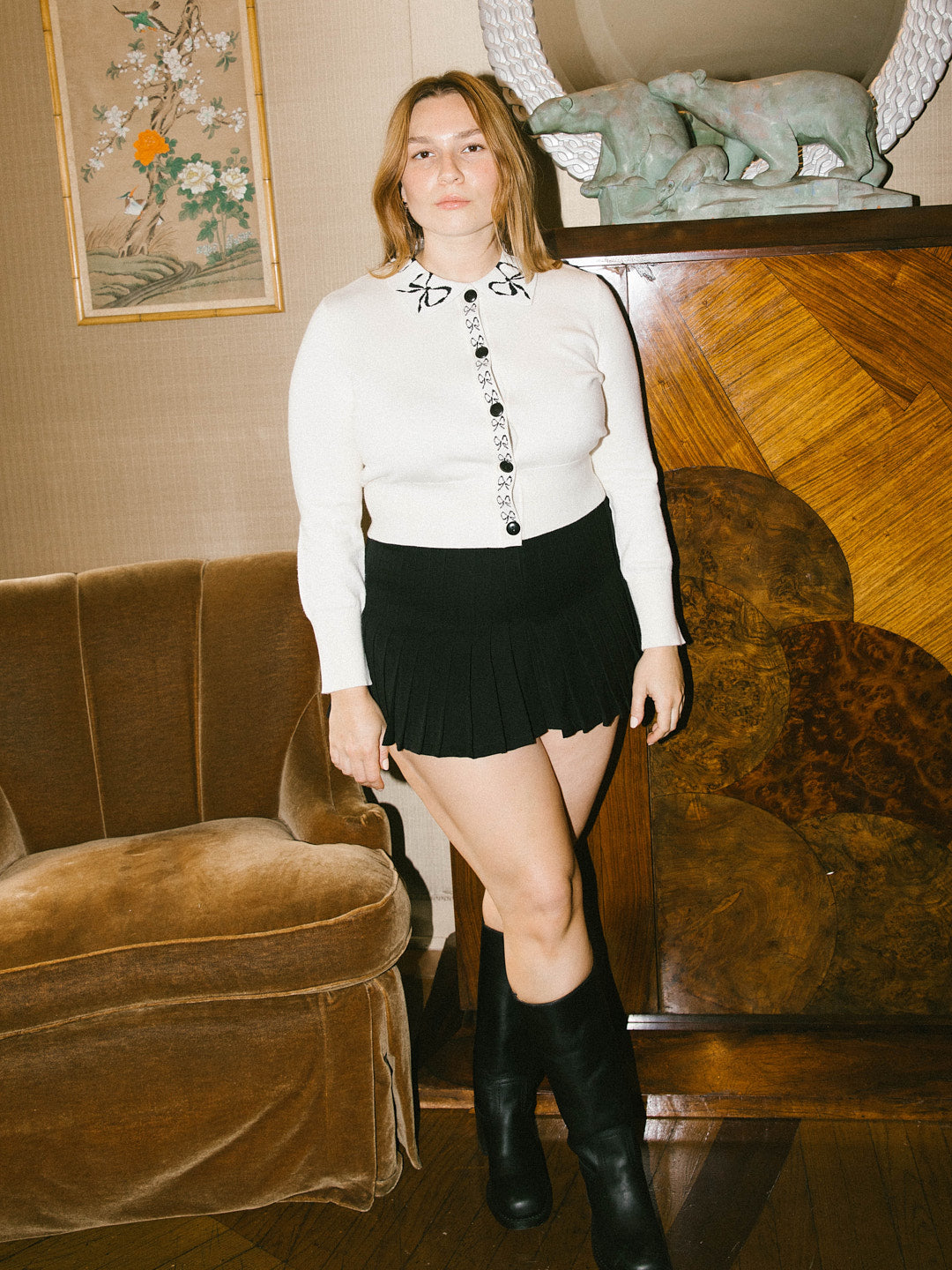 So obsessed with this skirt!! I love how you can adjust the sizing with the belt. It's the perfect length and the pleat really adds something special.