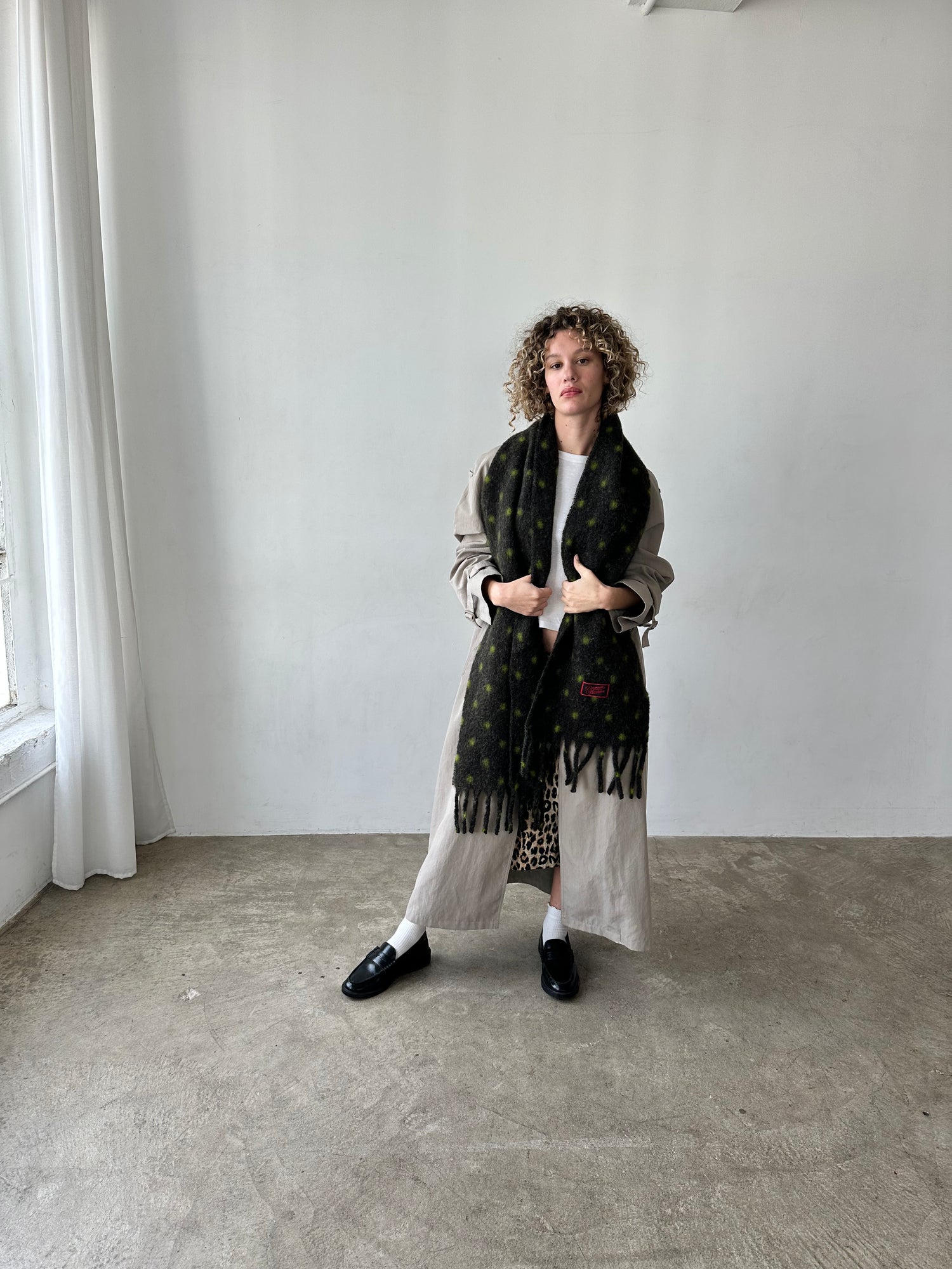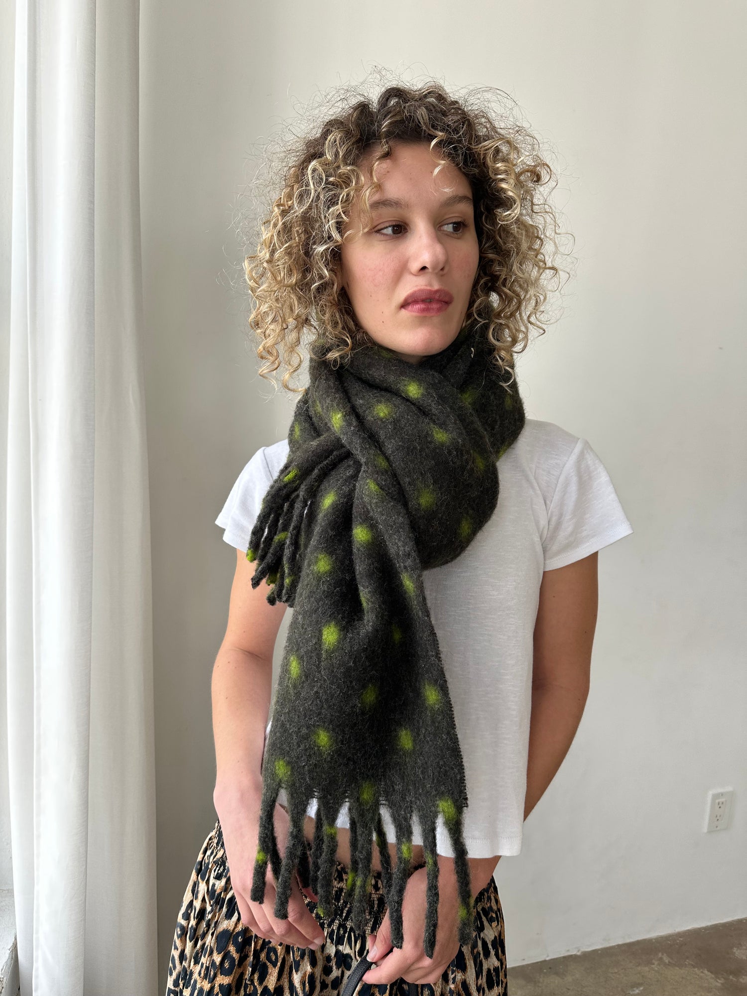 DM Fluffy Scarf - Charcoal/Lime Spot - $88.00