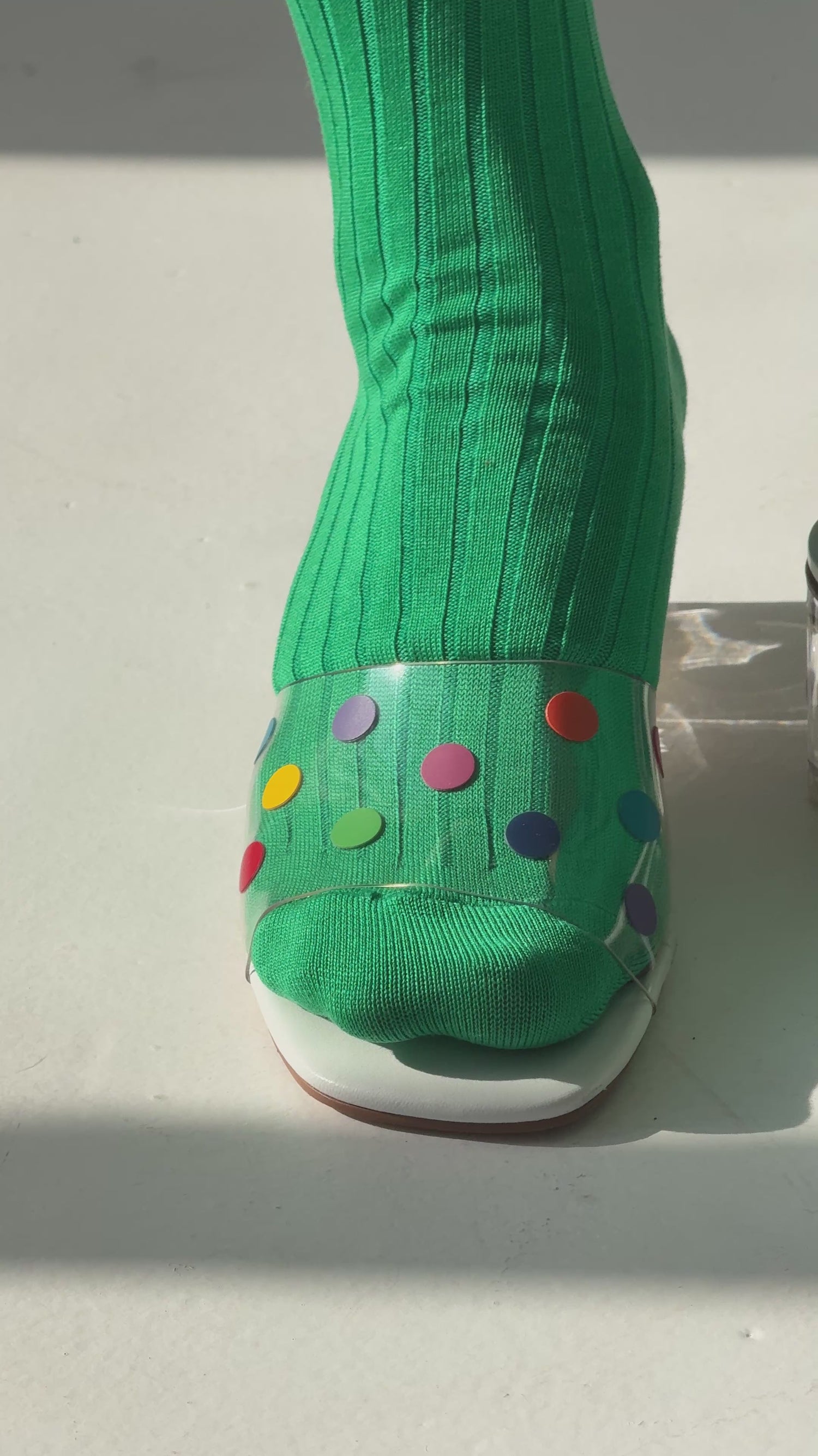 Step into style with the Dotti Kitten Heel! This chic shoe adds a vintage touch to any outfit, featuring a playful dot design on a transparent strap and heel. So comfy- the material feels jelly vs plastic!