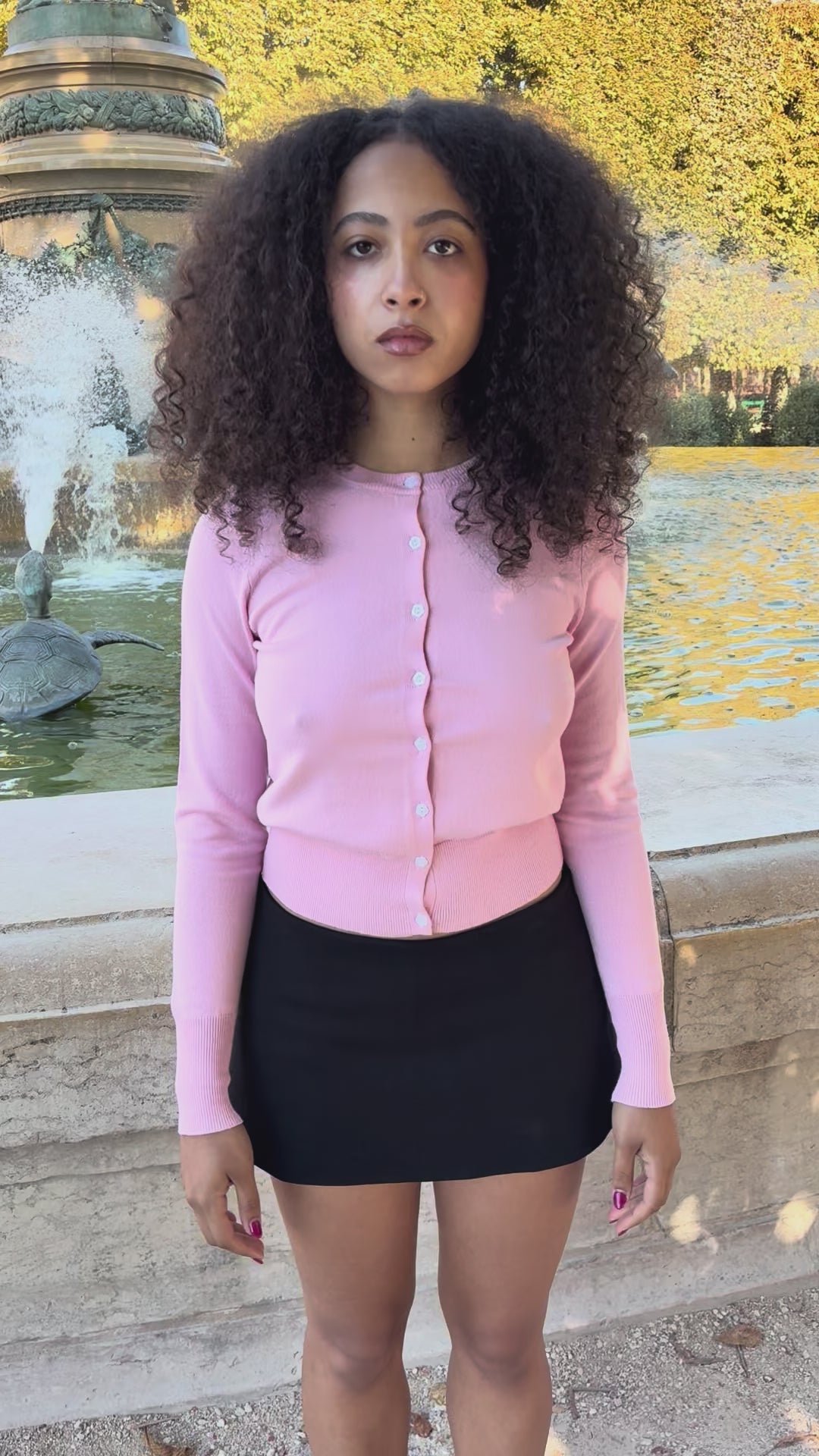 šŸ–¤ Geel Says Gah! Shop the exclusive collection of essential Geel styles only available at Lisa Says Gah. Introducing the Erin Cardigan in a Ballet Pink: A pink fitted, cardigan sweater made in a super soft knit featuring flower buttons and a stretchy fit. With its classic design, this cardigan is perfect for adding a pop of color to any outfit.
