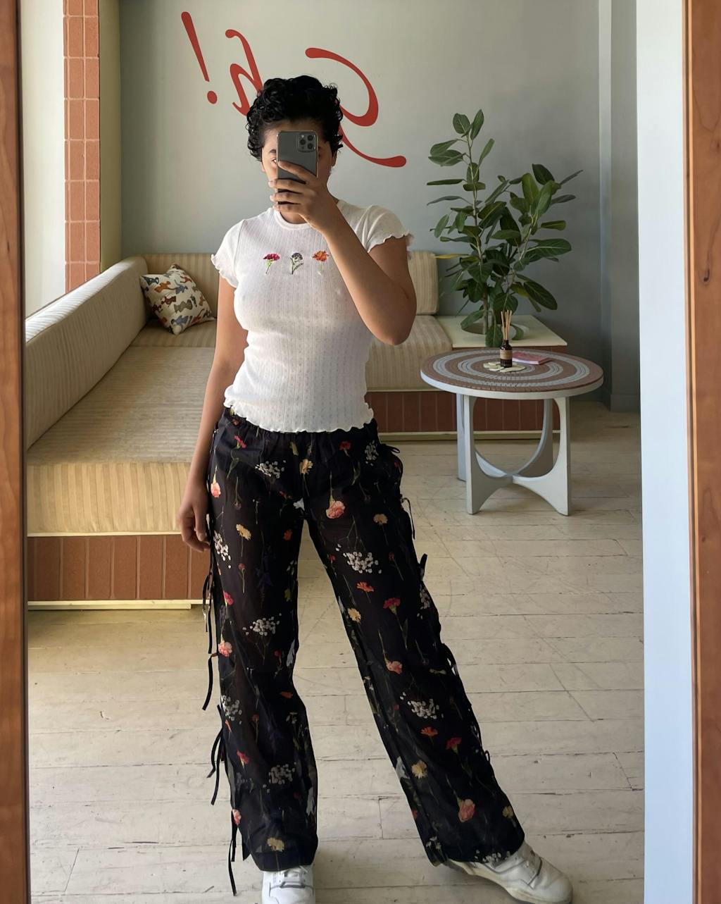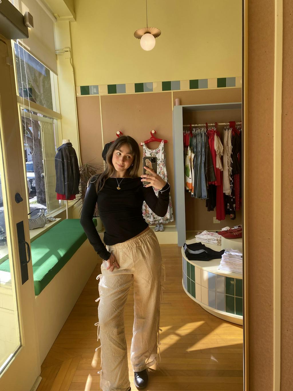 I wasn’t sure how the cashew color would look on me, but I was pleasantly surprised ! I paired the pants with a black top which really let the pants speak for themselves. The ties along each side make for a unique piece! I’m wearing a size XS, but depending on the fit you want, you could definitely size up for a looser look.