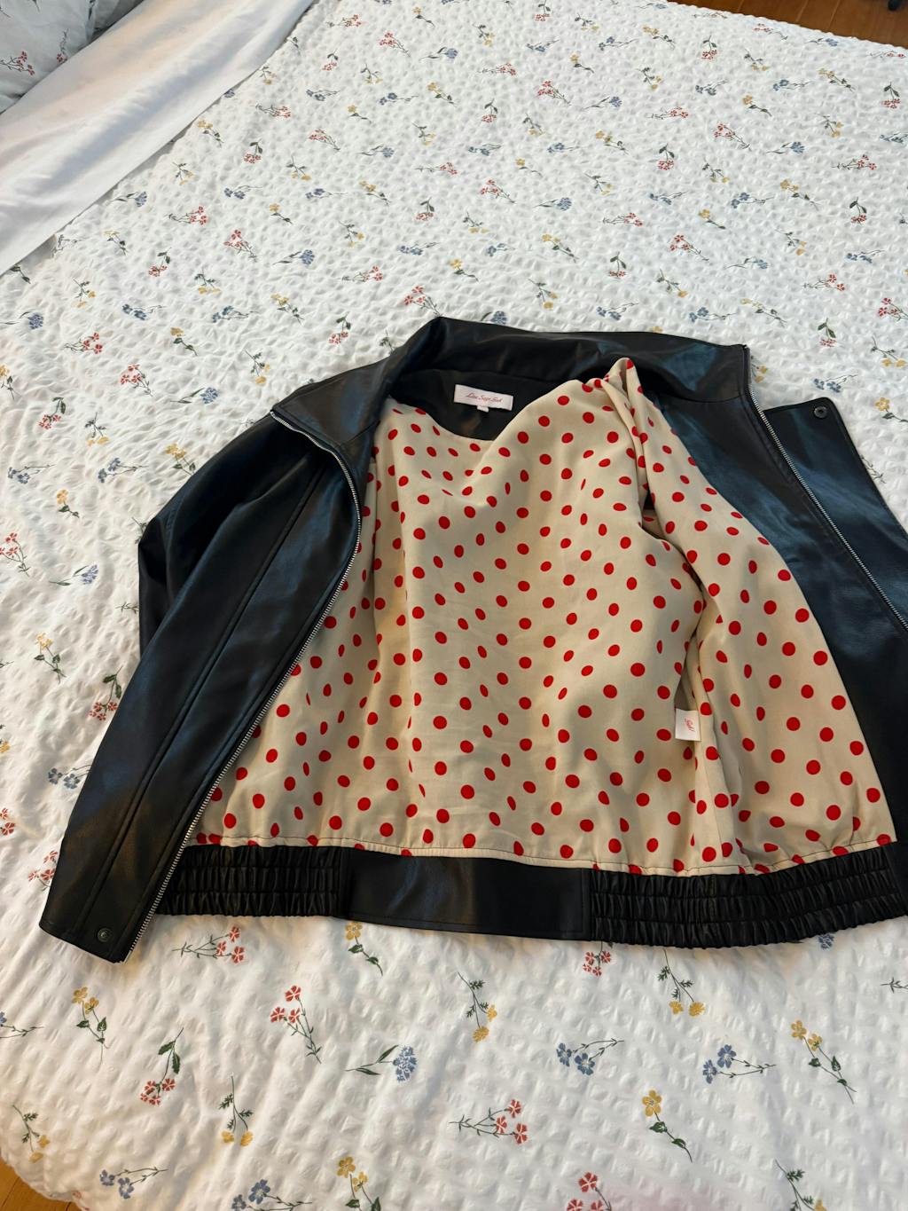 The polka dot lining is such a fun pop, I absolutely love this jacket. Great quality and value. Goes with everything.