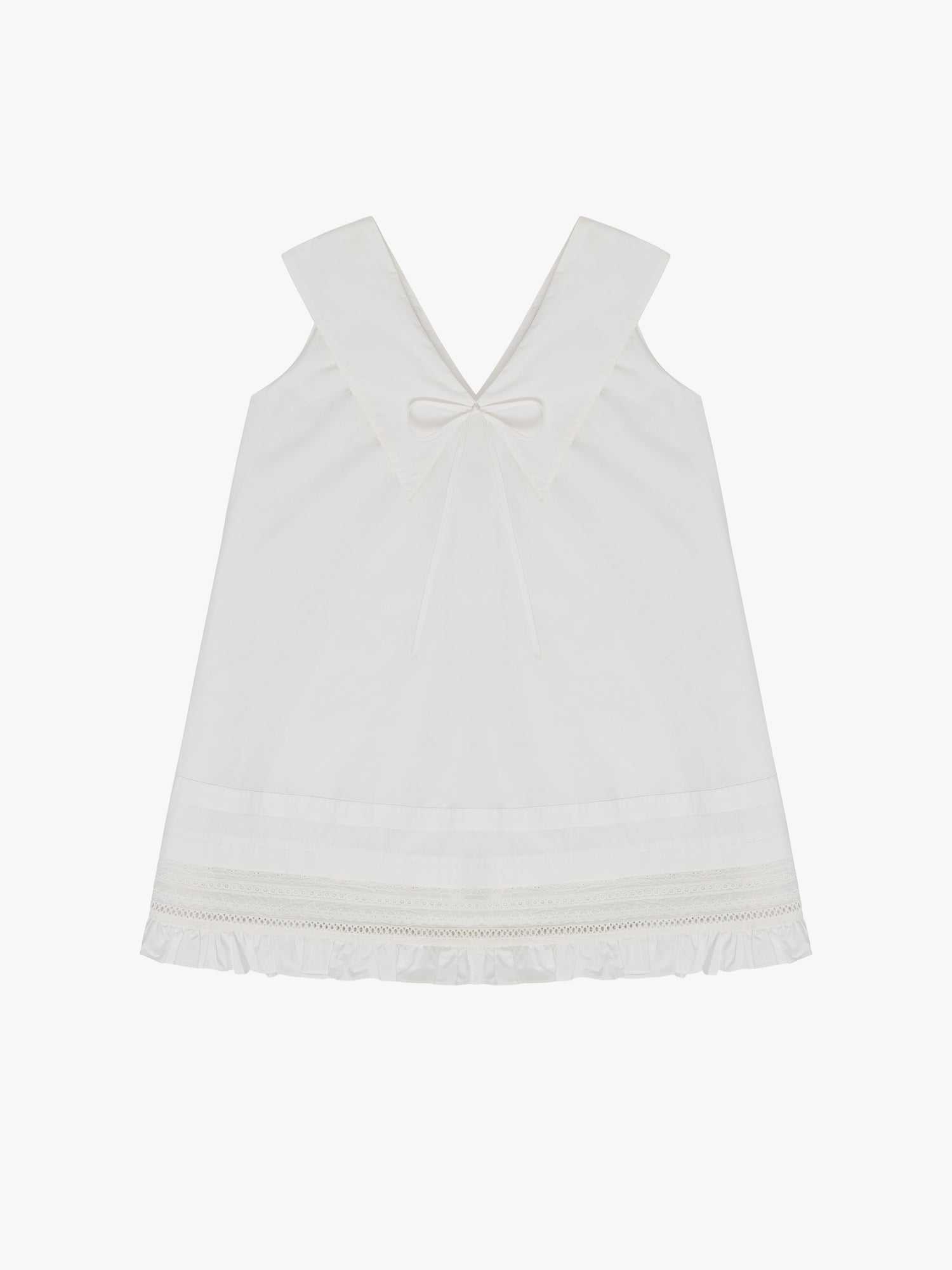 Fan-favorite: The Jenny Mini Dress is a 100% cotton mini dress with a point collar at front and back featuring a bow at center front. This mini dress has an eyelet detail at the hem. Running slightly large, suggest to size down if in between sizes.
