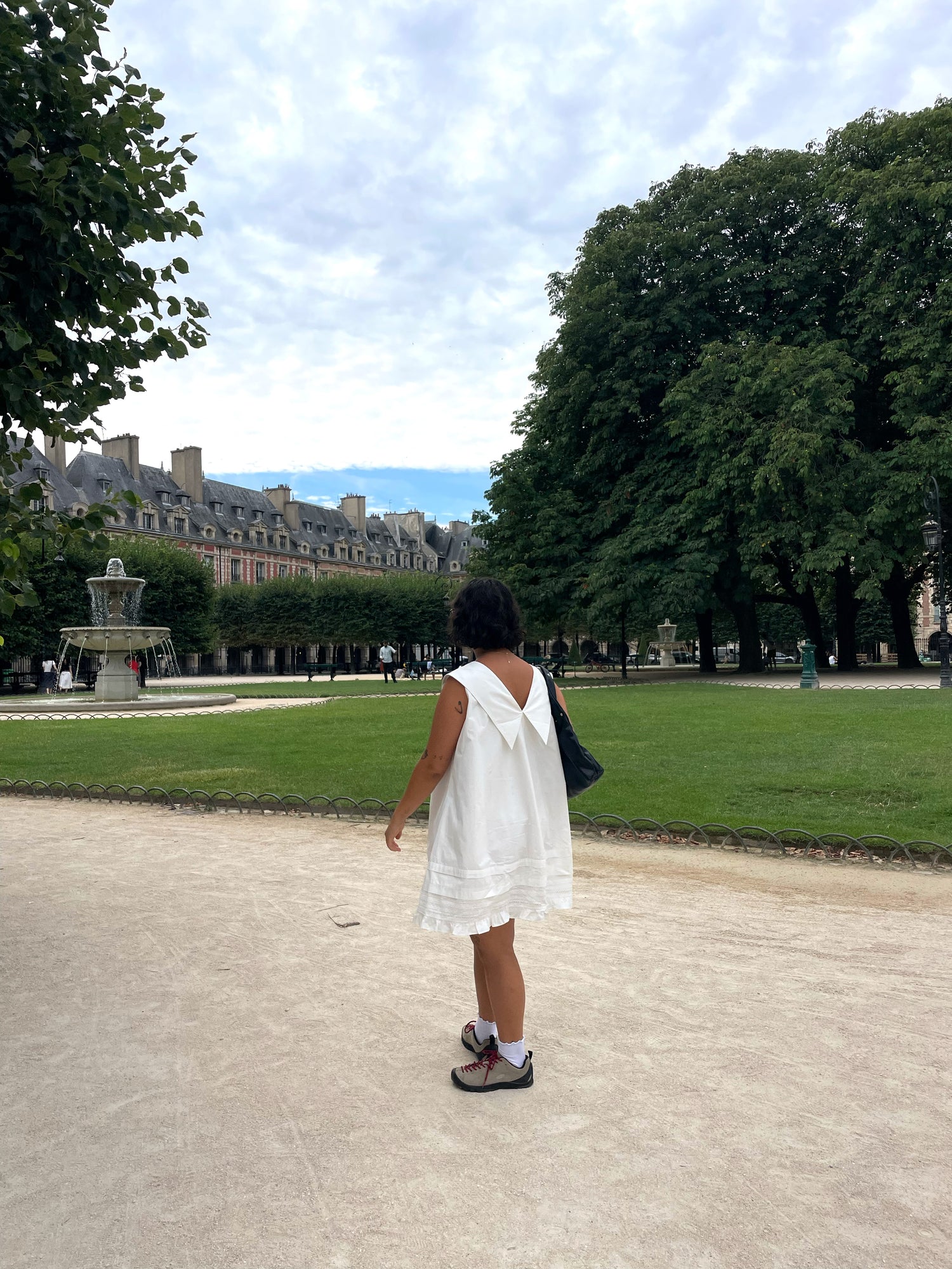 This dress is the sweetest thing! I’ve styled it with boots like they do in the photos and LOVE IT. It gives sweet and quirky without looking like you’ve put on a child’s dress as the proportions are still right. The fabric is heavier and high quality and all of the details are adorable! She definitely runs quite large- I went down to just a L but I think could have gotten the M and been fine- depends on how much excess fabric you want on the sides- as its meant to flare out. So happy I took the plunge on this one.