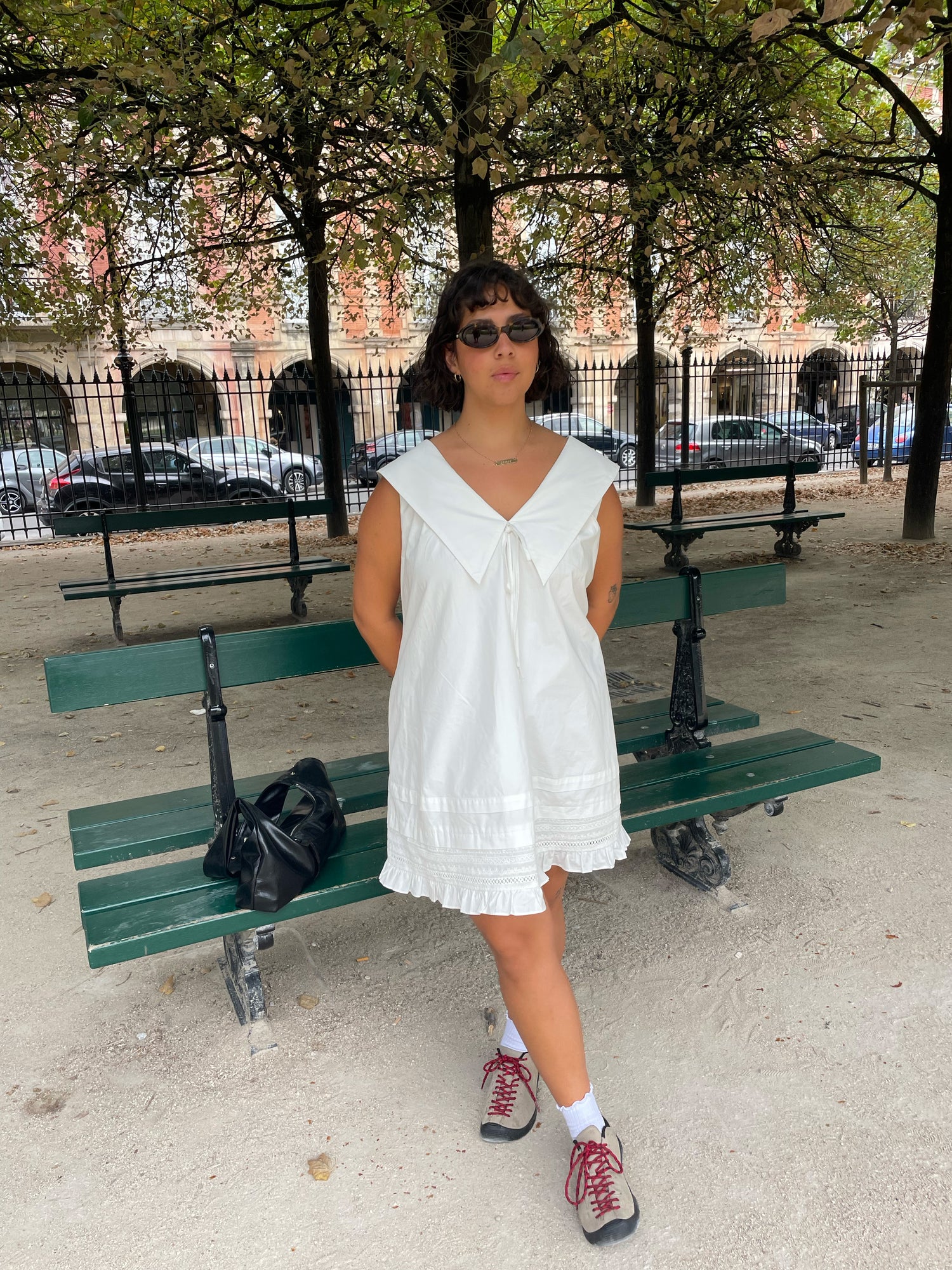 This dress is so cute I could cry! I love the collar and lace/ruffles at the bottom. It fits more oversized, so I sized down to an M and it was perfect! I'm an 8-10 for reference. It's so flowy and sweet, I love it paired with y Frye boots. I know I'll be wearing it all summer long.