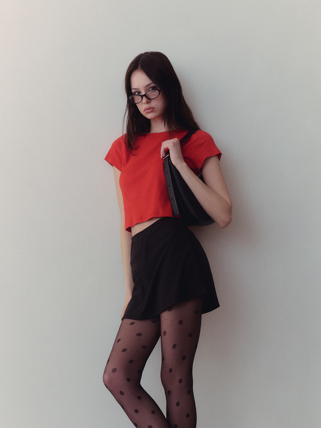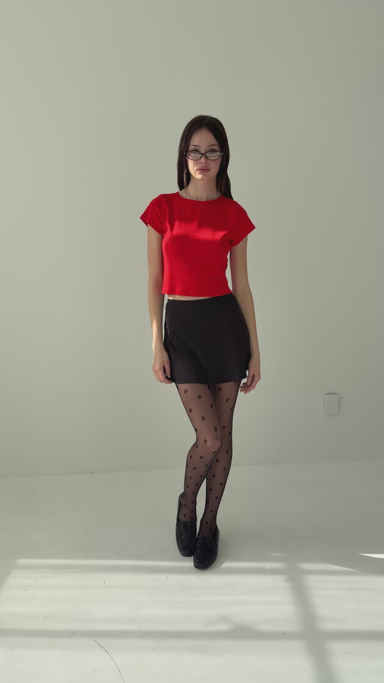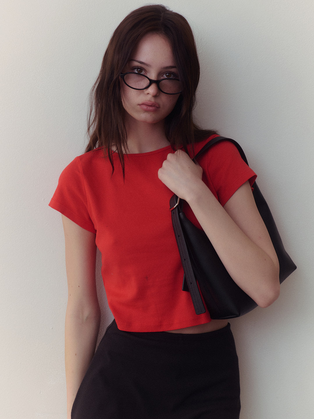 Red cotton tee with a boxy, cropped silhouette. Made to have a vintage-feel.