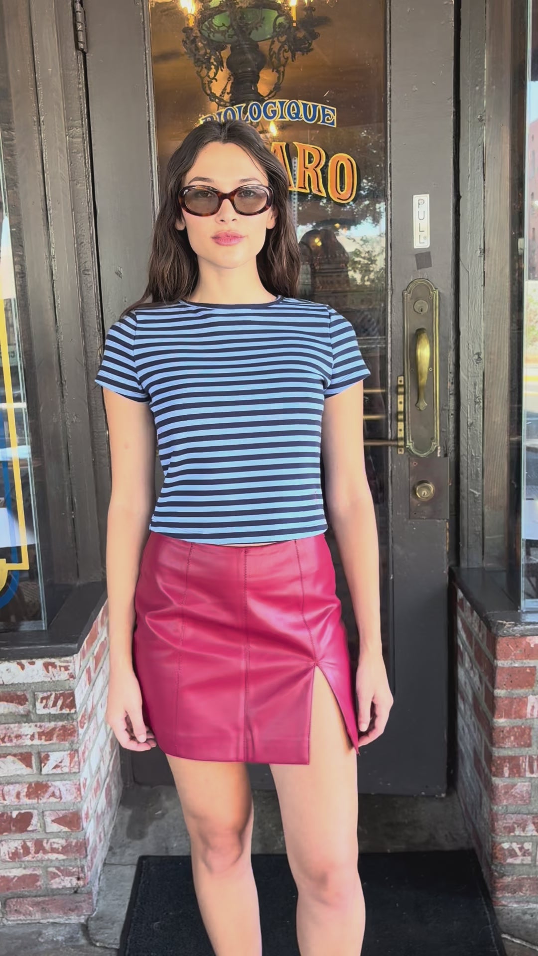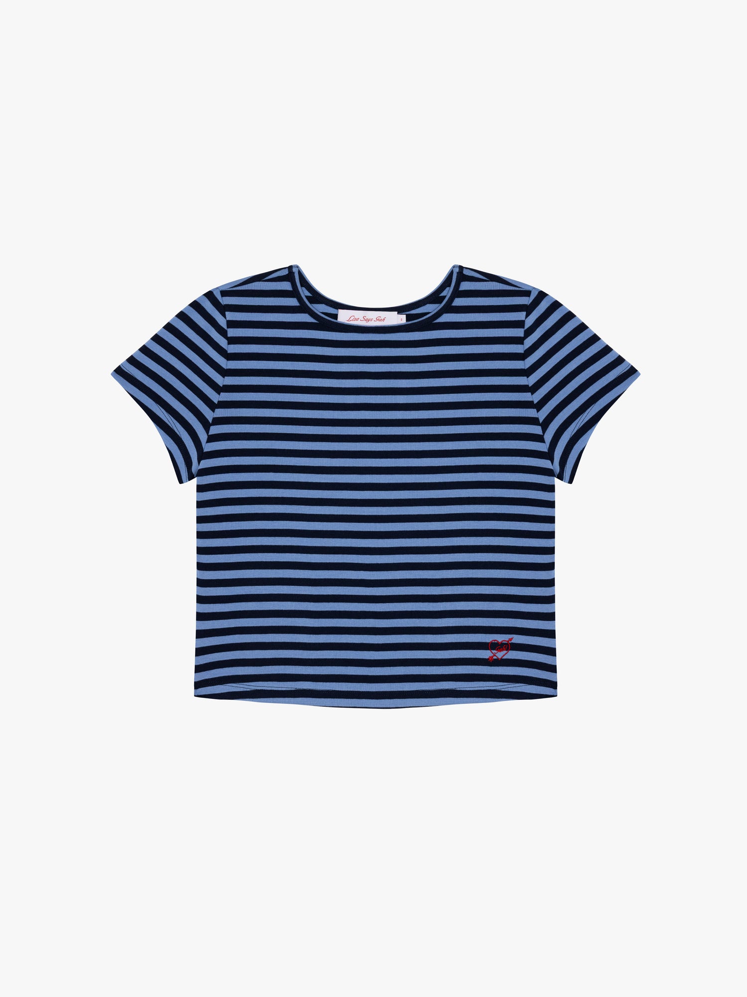 Introducing Le Petit Dot: Dots, stripes, and silhouettes made for the season in-between. The Jude Tee in our signature Oxford Stripe print is a true staple for any wardrobe. This cotton tee has a boxy, cropped silhouette. Made to have a vintage-feel. Featuring our signature Gah! embroidery at the bottom hem.