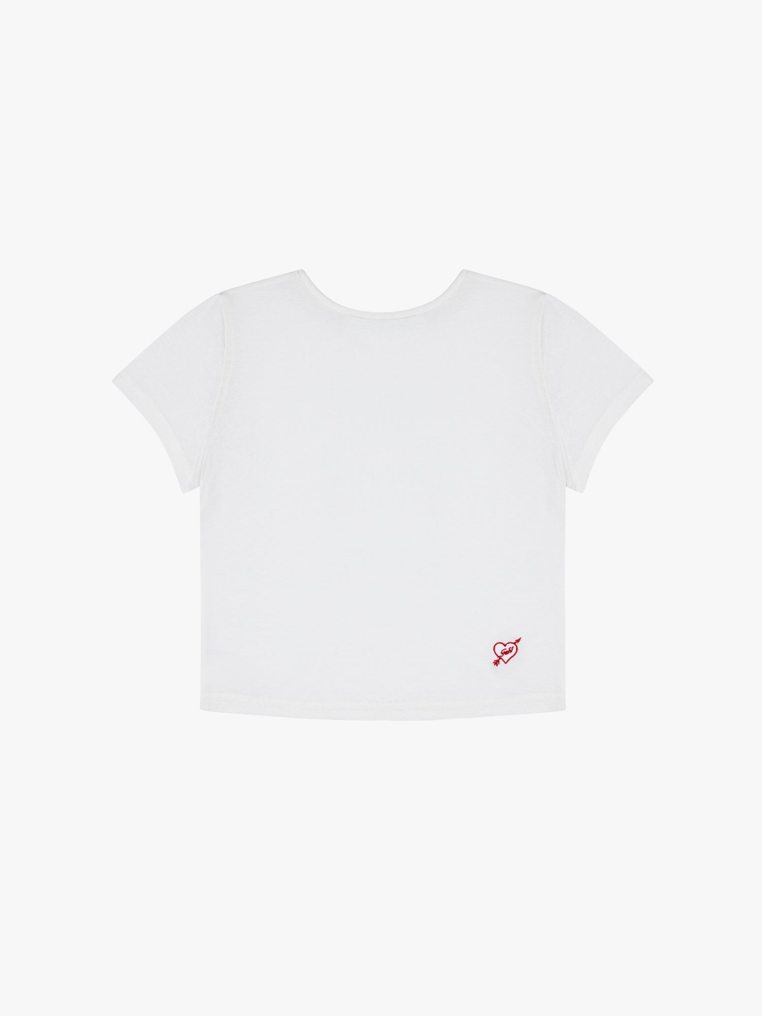 The Jude Tee in a solid white is a true staple for any wardrobe. This cotton tee has a boxy, cropped silhouette. Made to have a vintage-feel. Featuring our signature Gah! embroidery at the bottom hem.