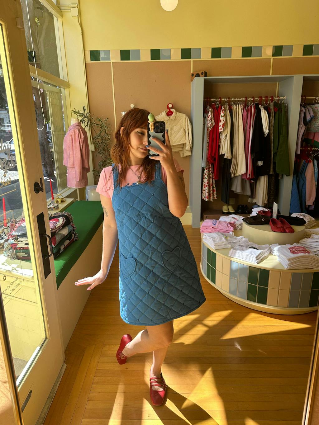 I feel like a cartoon character in the best way when I wear this dress! The dress has a pretty stiff A-line shape, but it adds the the cute/kitch factor. I have seen it styled more fitted too if you can fit into the next size down. I am usually between M and L, and i like the L for a more comfortable, loose fit.