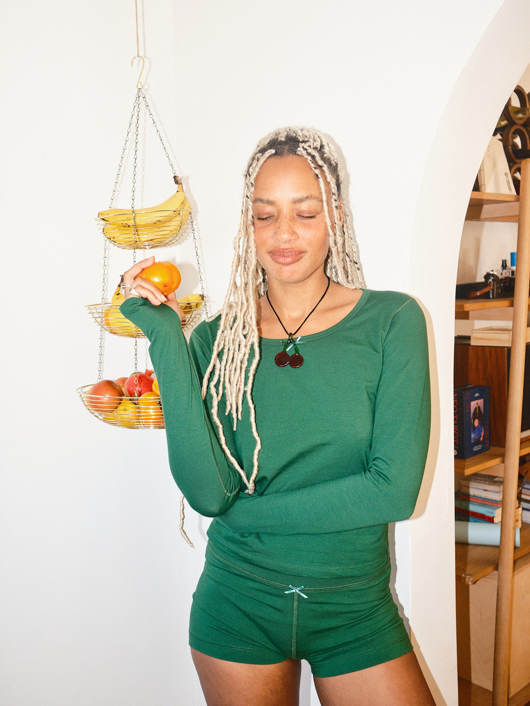 Get cozy in these Lounge Shorts - now in a gorgeous shade of clover green! Perfect for lounging around the house or layering, these shorts will keep you comfortable and stylish