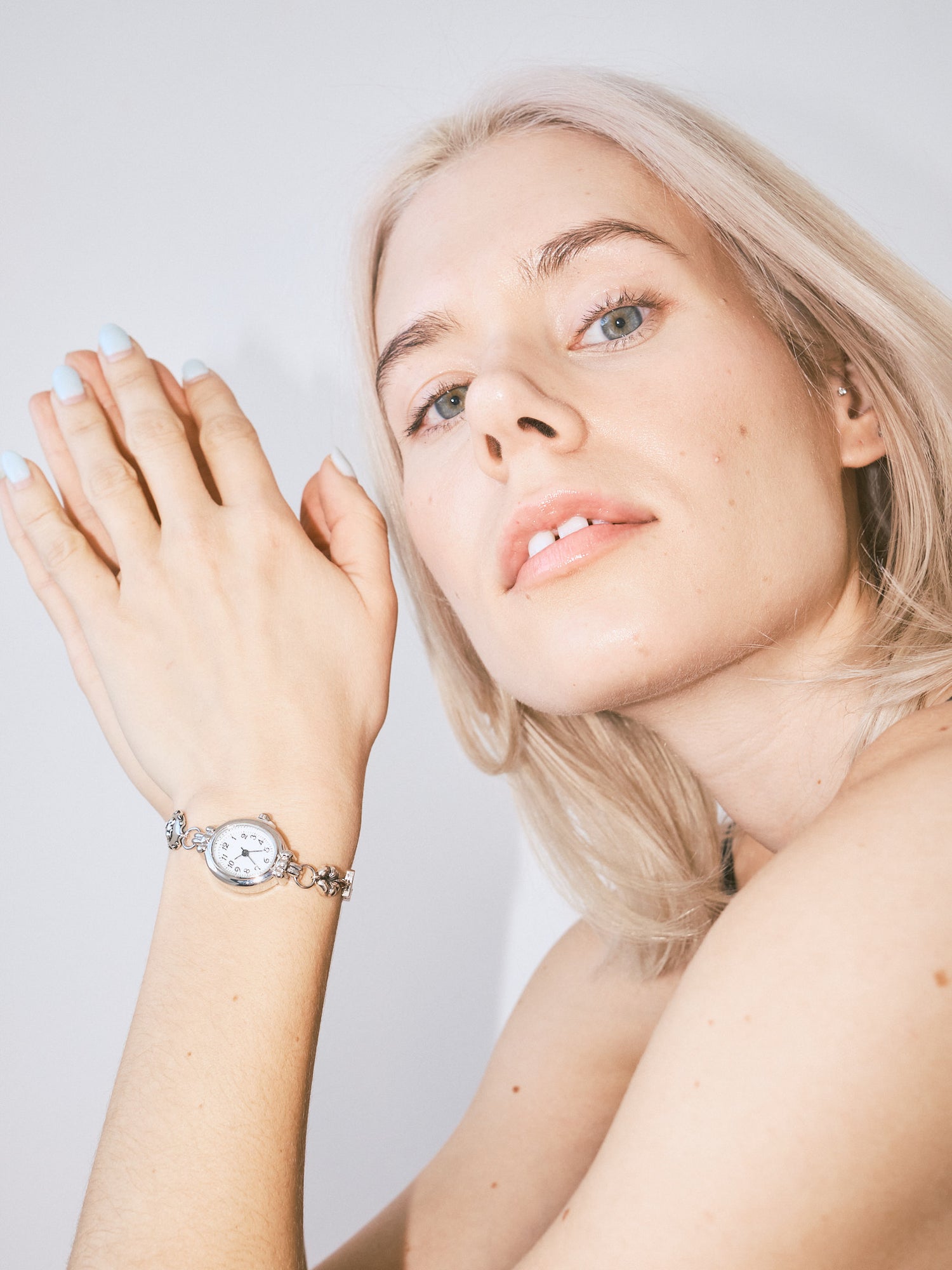 The Lucky Charms Wristwatch brings a little luck to your day. This silver watch charm bracelet features a mix of playful charms, combining the functionality of a timepiece with a touch of whimsy. A lucky addition to any outfit.
