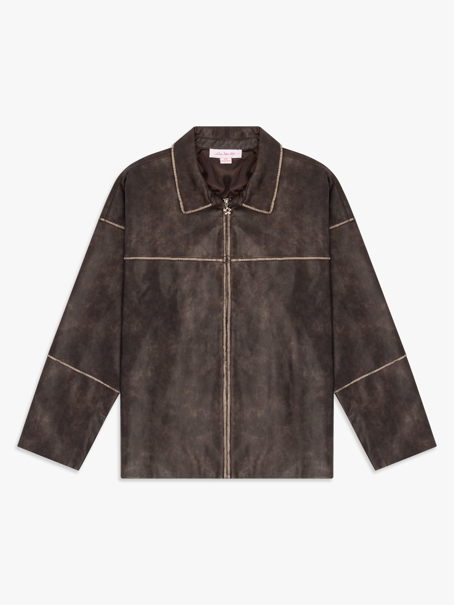 This vintage style black faux leather jacket is designed with a boxy fit and silver zipper. Perfect for making a stylish statement! Light enough for all-year wear. Runs large with an oversized fit.