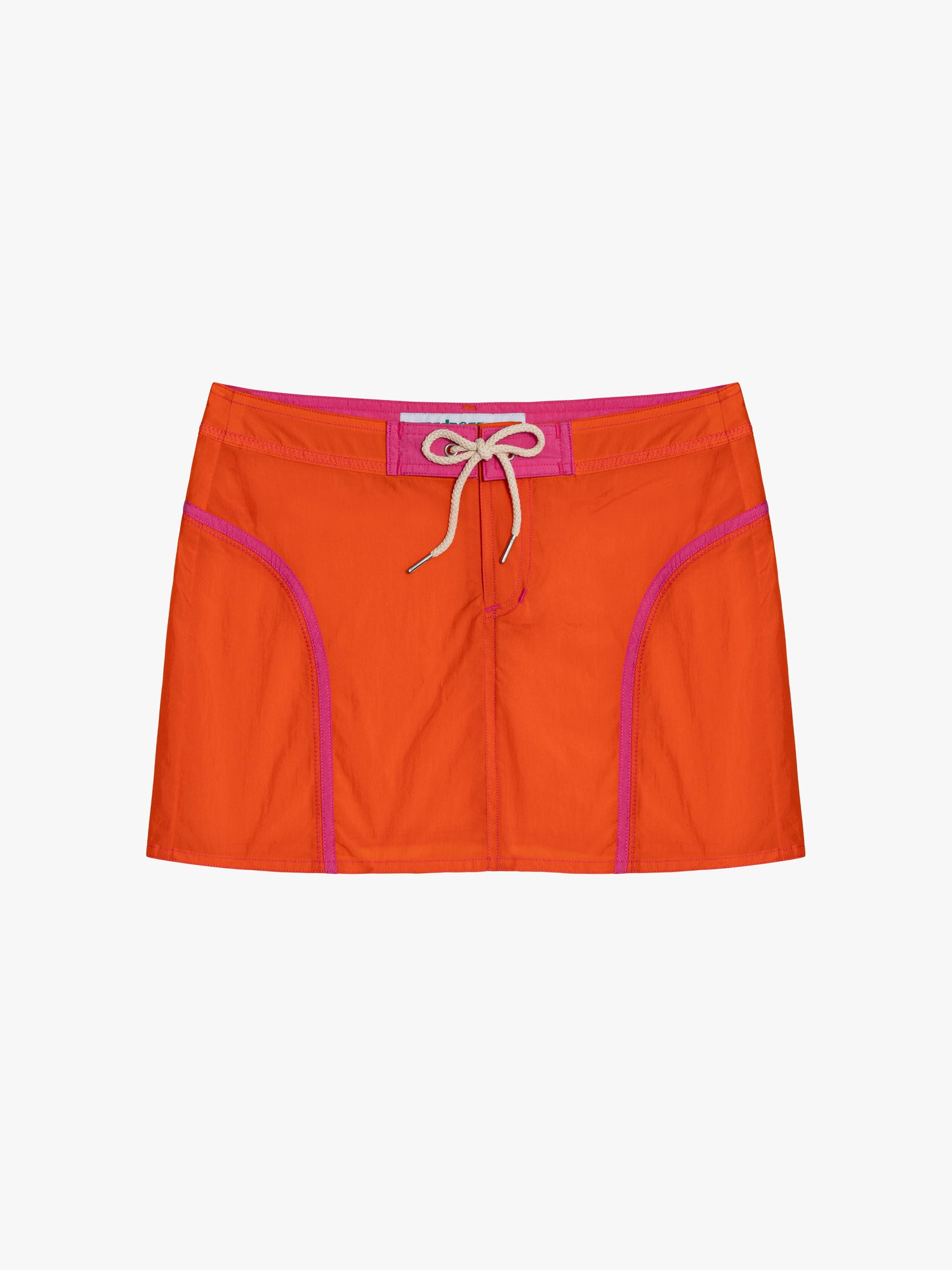 From independent LA label Made Some Souvenirs, brighten up your wardrobe with these Y2K inspired board shorts. Orange and pink nylon shorts - perfect for adding a pop of color and a touch of fun to any outfit!
