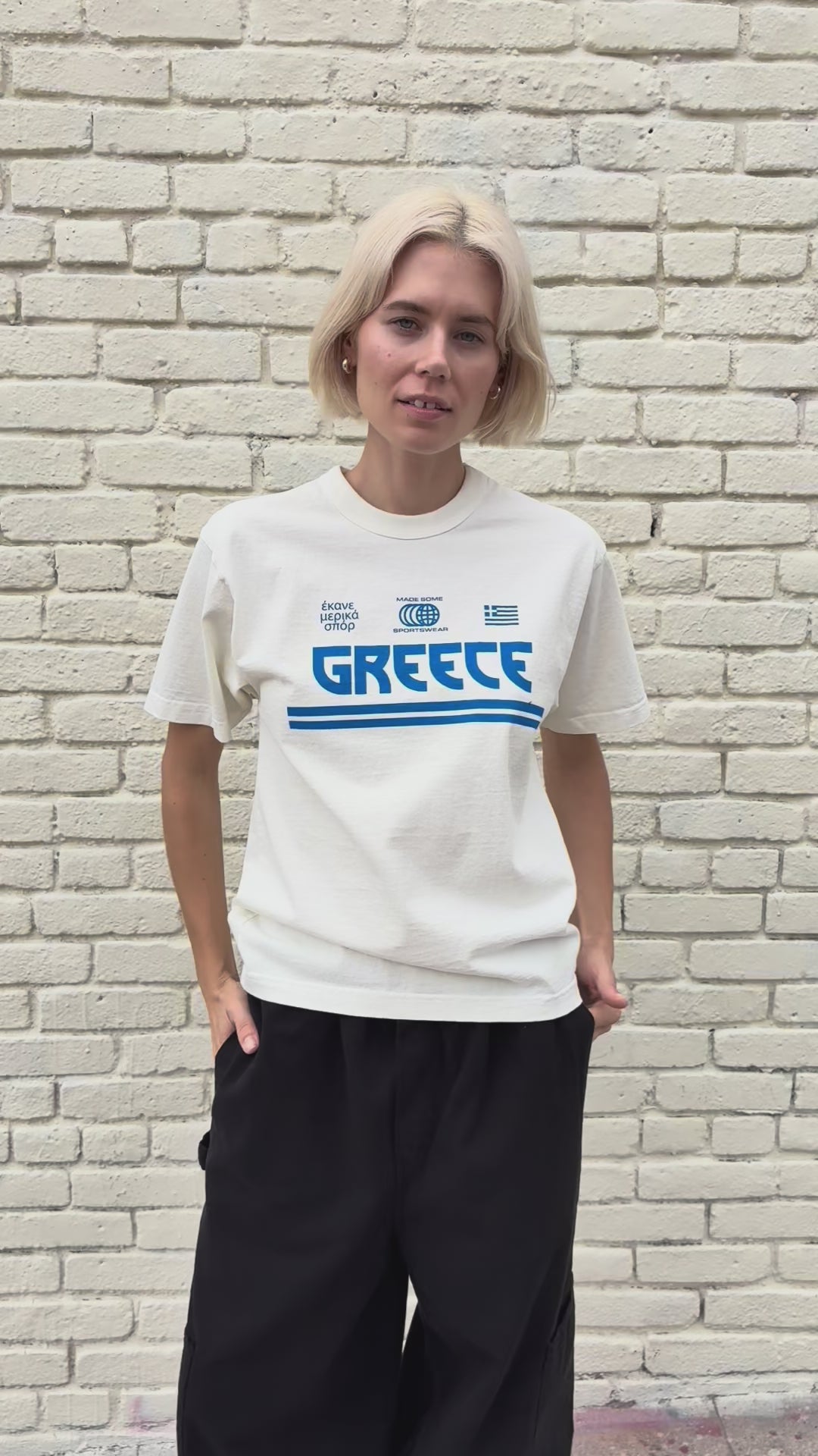 Get ready for the ultimate summer vibes with this cream cotton tee! Perfect for channeling your ideal Greece vacation (even if it's just in your imagination).