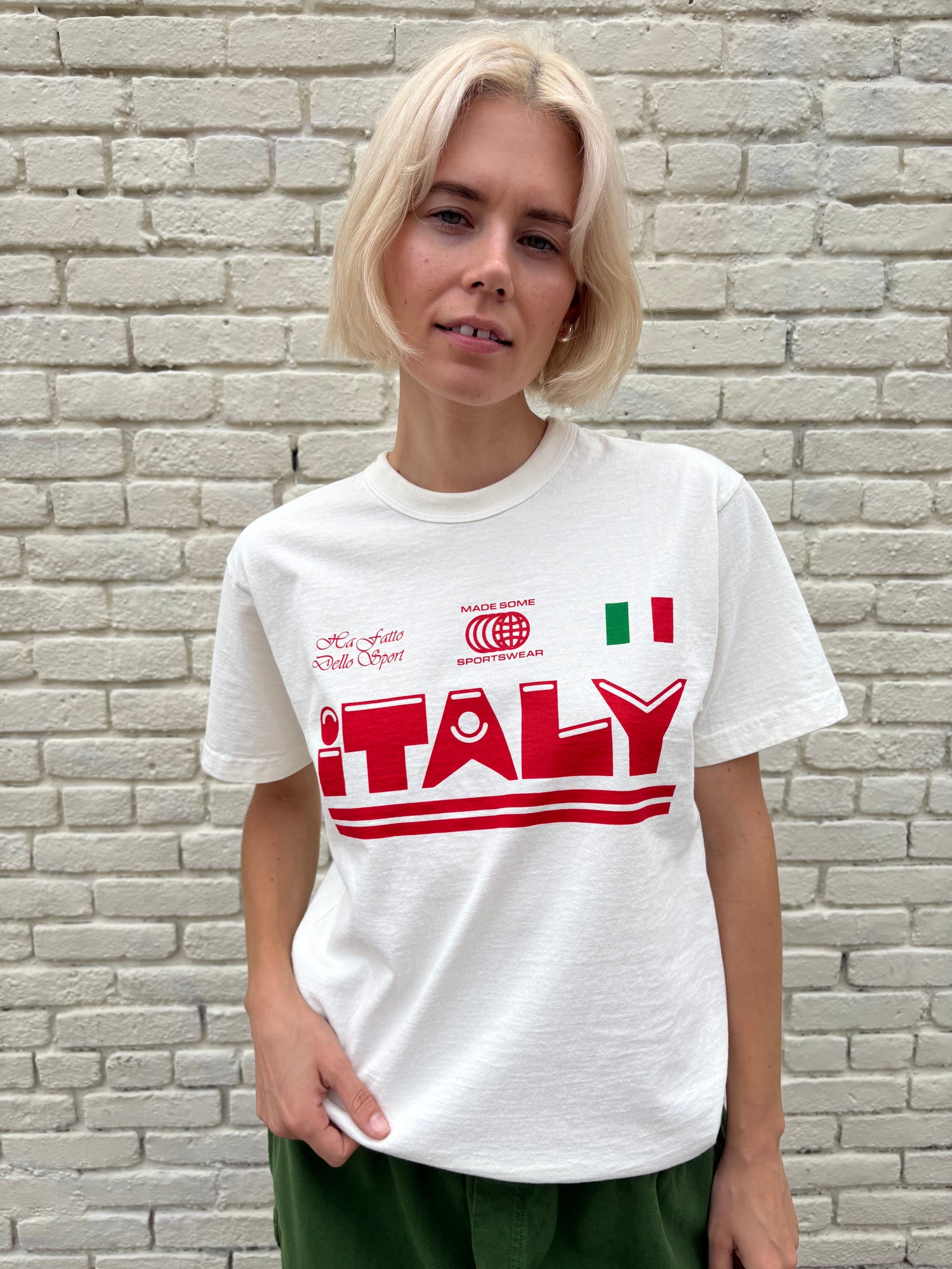 Get ready for the ultimate summer vibes with this cream cotton tee! Perfect for channeling your ideal Italian vacation (even if it's just in your imagination).