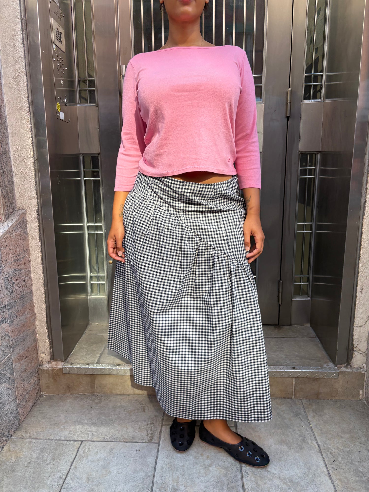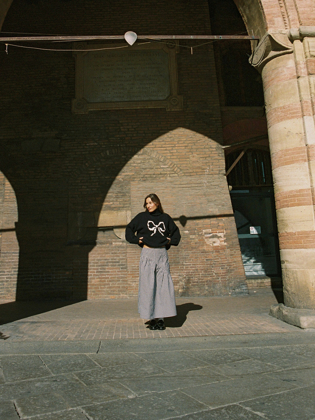 The Maeve is a best selling midi skirt featuring a fitted waist, side zip closure, and an asymmetrical drop waist in our signature Midnight Check print. Style it with a pair of boots and tee for a day in the city or a kitten heel and a blouse for a night out with dinner and friends.