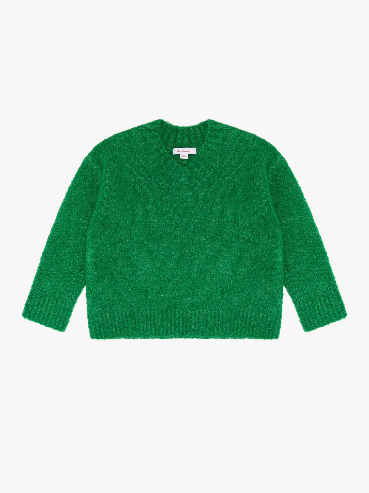 Introducing the Marion V-Neck Sweater: This bright green sweater features a v-neckline and an oversized fit. Made with a soft boucle knit, this cozy sweater will keep you warm all fall and winter long.