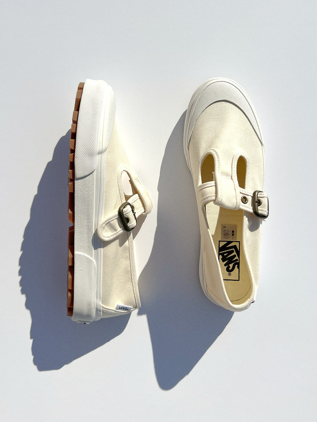 A cotton canvas traditional Mary Jane silhouette and uniquely matched with a chunky lug rubber outsole.