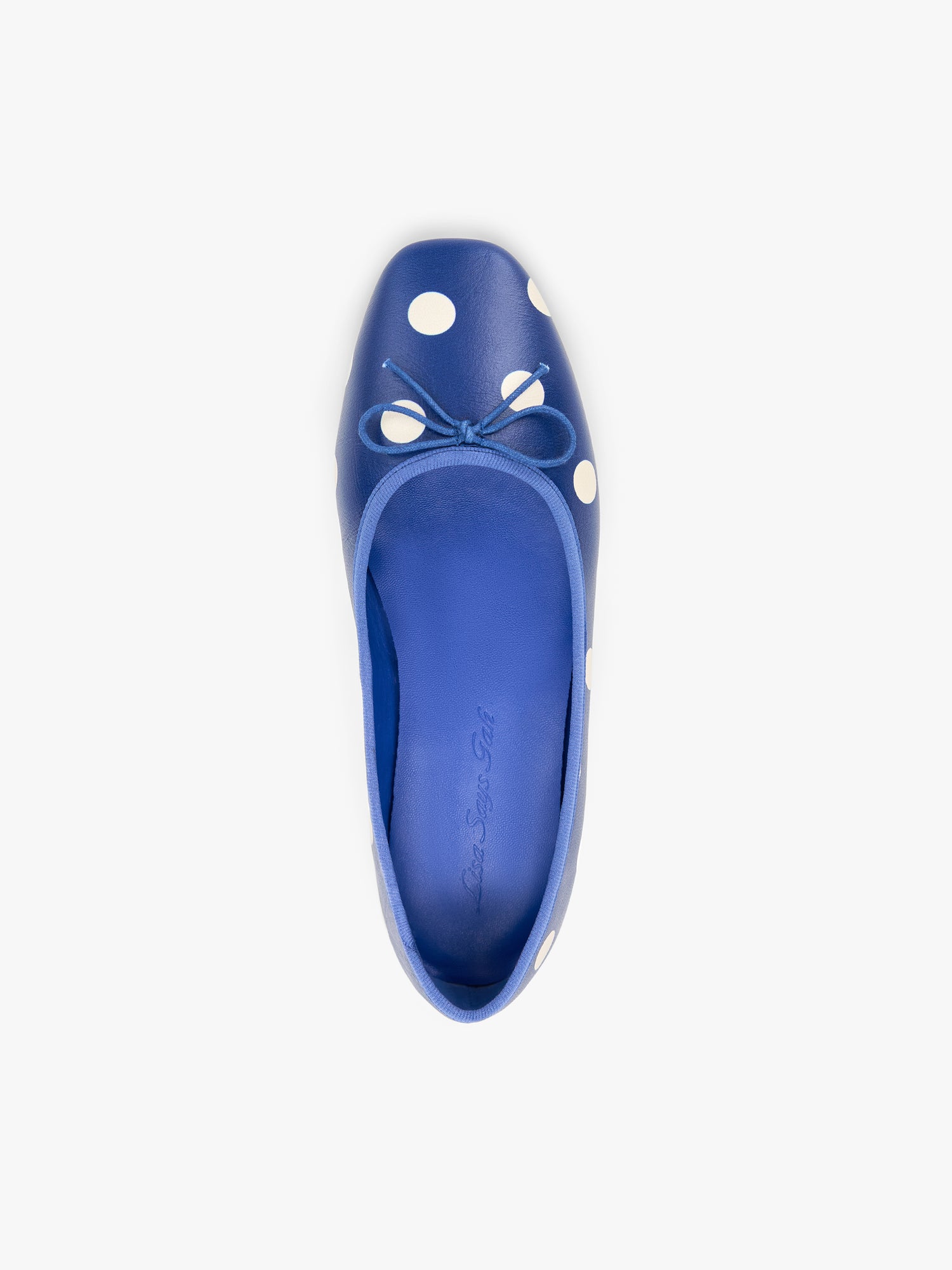 A classic ballet flat with an adorable bow detail and gorgeous polka dots. The perfect addition to dress up any outfit!