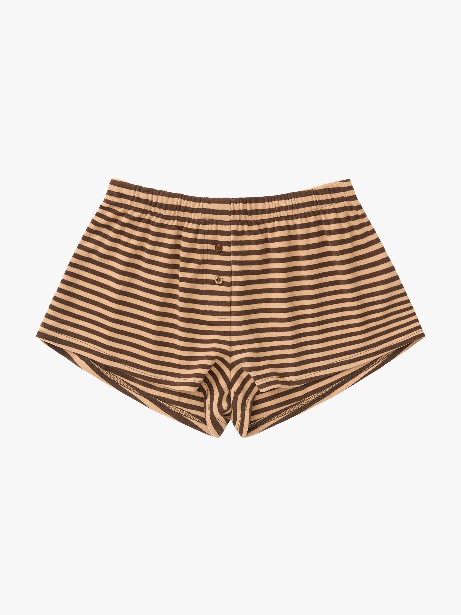 The Mona Short is a cozy striped short from Loucia. Perfect for lounging around and just in time for the cold seasons. Match it with the Mona Top. Comes with an elasticized waist and decorative buttons at the front for a boxer look.