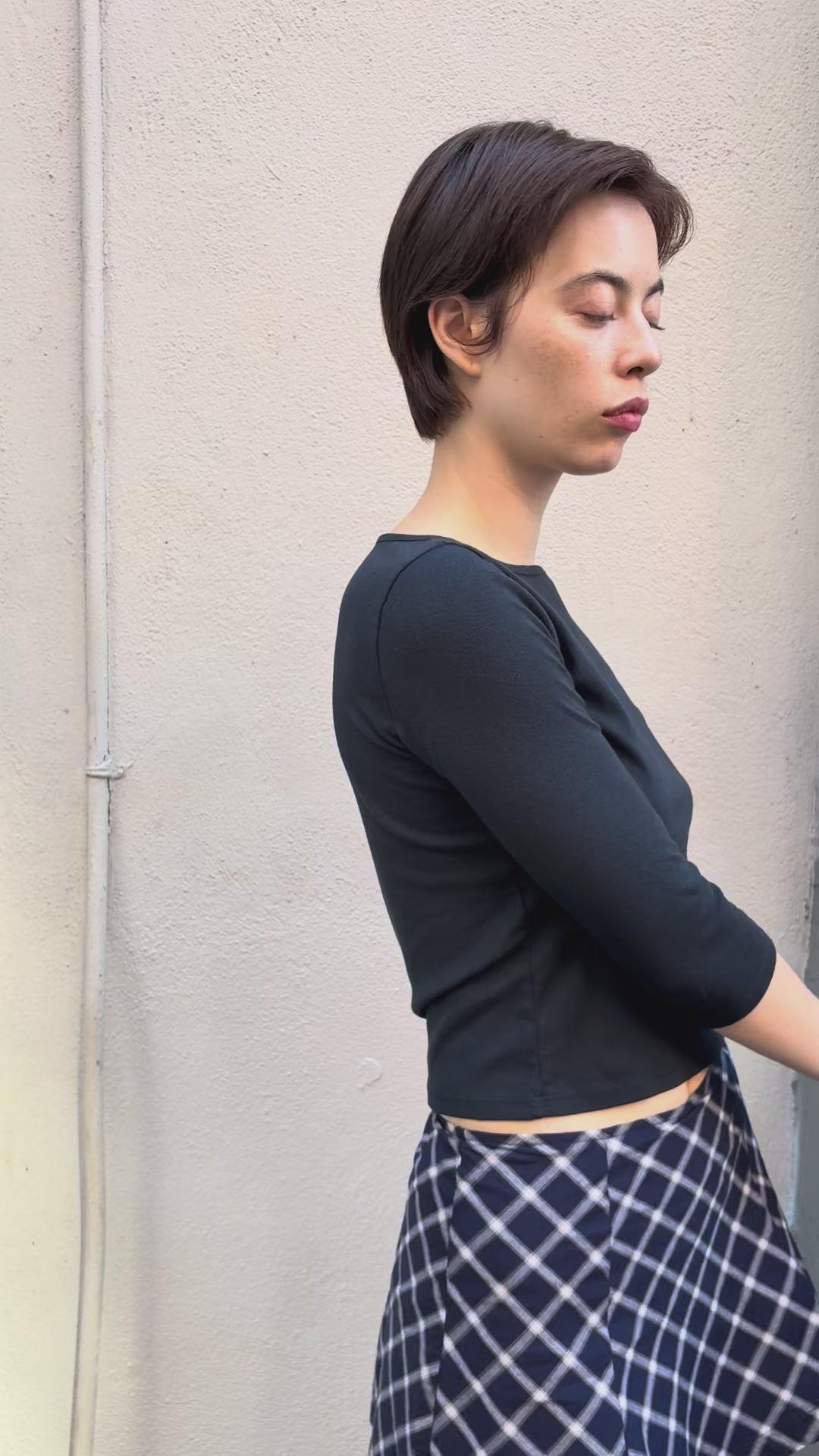 The Nia Top in a classic faded black is a true staple for any wardrobe. This cotton blend 3/4 sleeve tee has a boxy, cropped silhouette. Made to have a vintage-feel. Featuring our signature Gah! embroidery at the bottom hem.