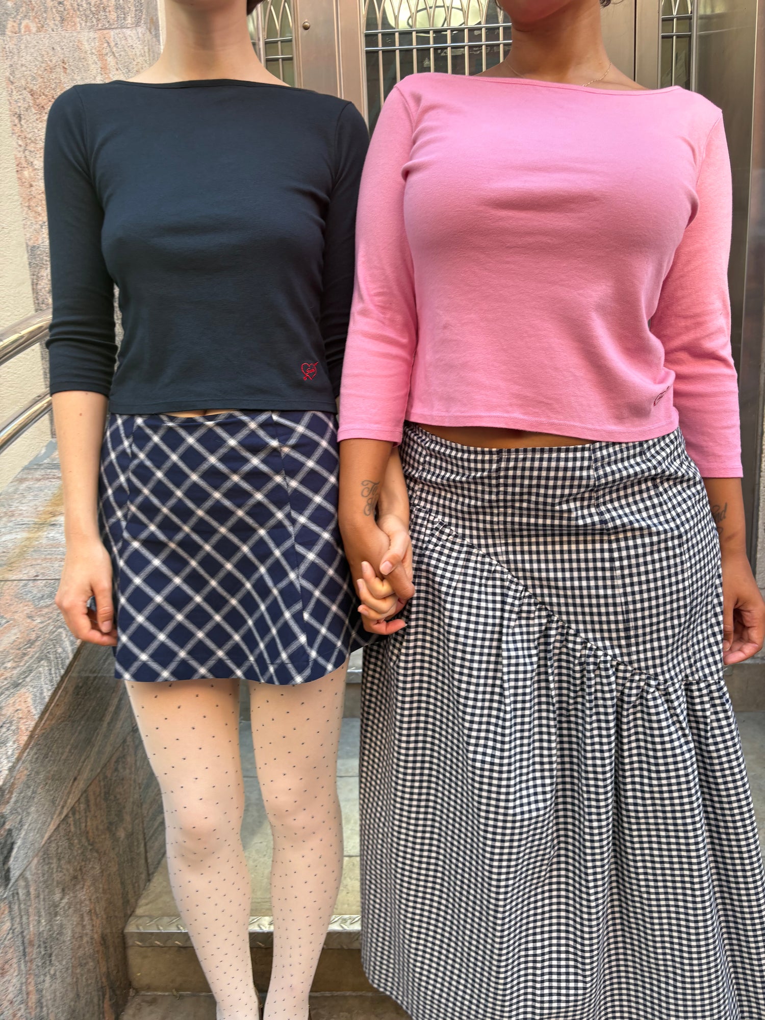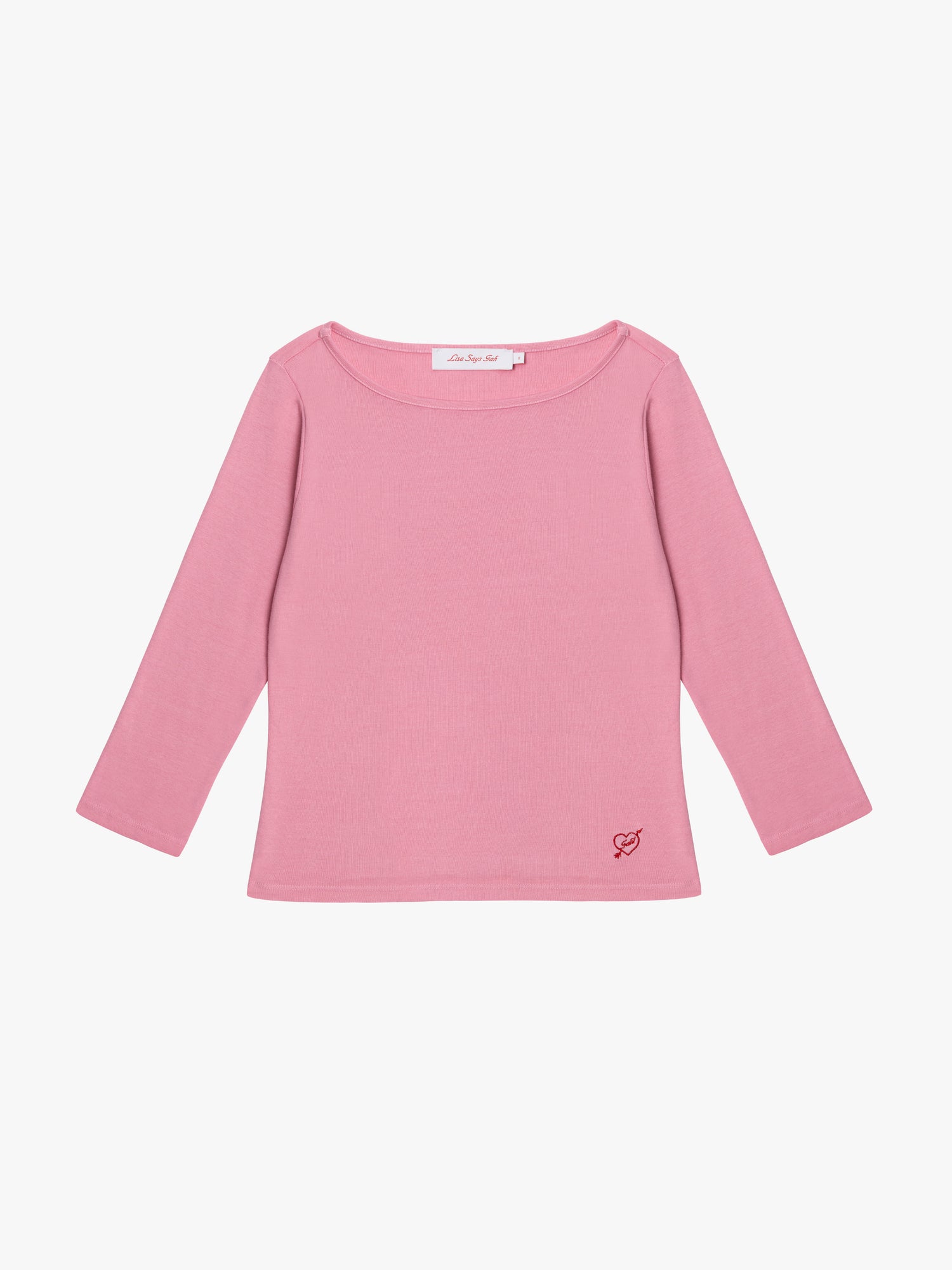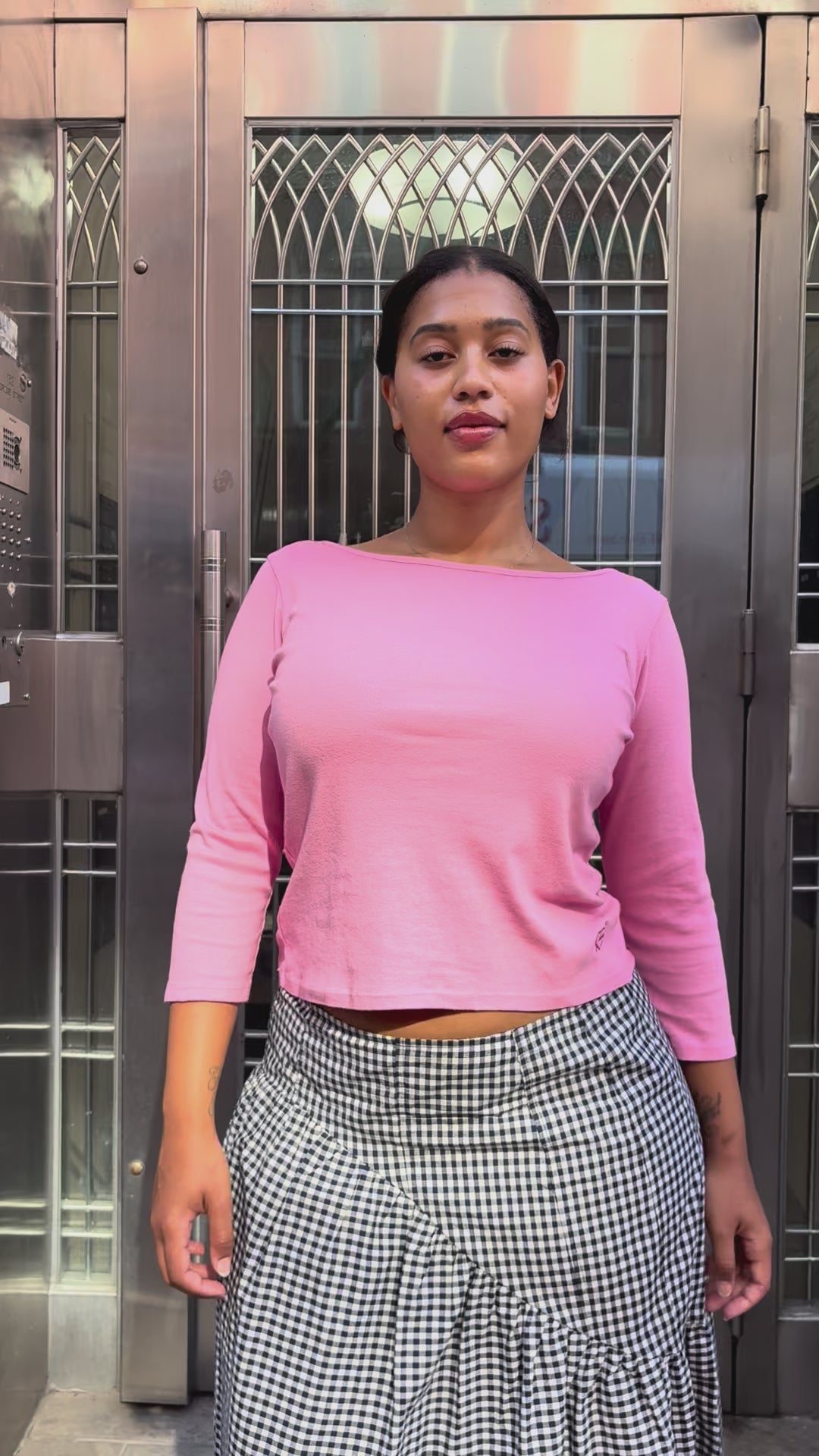 The Nia Top in a classic ballet pink is a true staple for any wardrobe. This cotton blend 3/4 sleeve tee has a boxy, cropped silhouette. Made to have a vintage-feel. Featuring our signature Gah! embroidery at the bottom hem.