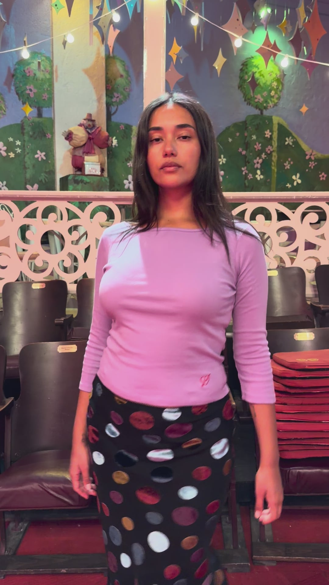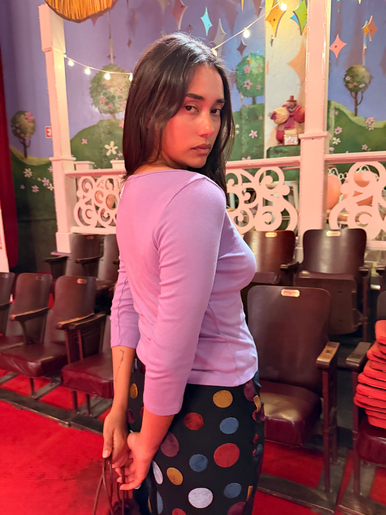 The Nia Top in a classic lilac is a true staple for any wardrobe. This cotton blend 3/4 sleeve tee has a boxy, cropped silhouette. Made to have a vintage-feel. Featuring our signature Gah! embroidery at the bottom hem.