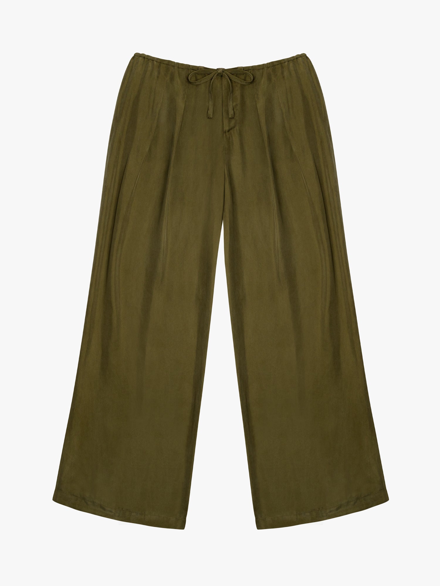 Meet the Pascal Pant: a wide-leg trouser in a soft tencel fabric featuring a drawstring waist, pleats at the top and decorative back pockets for a classic look.