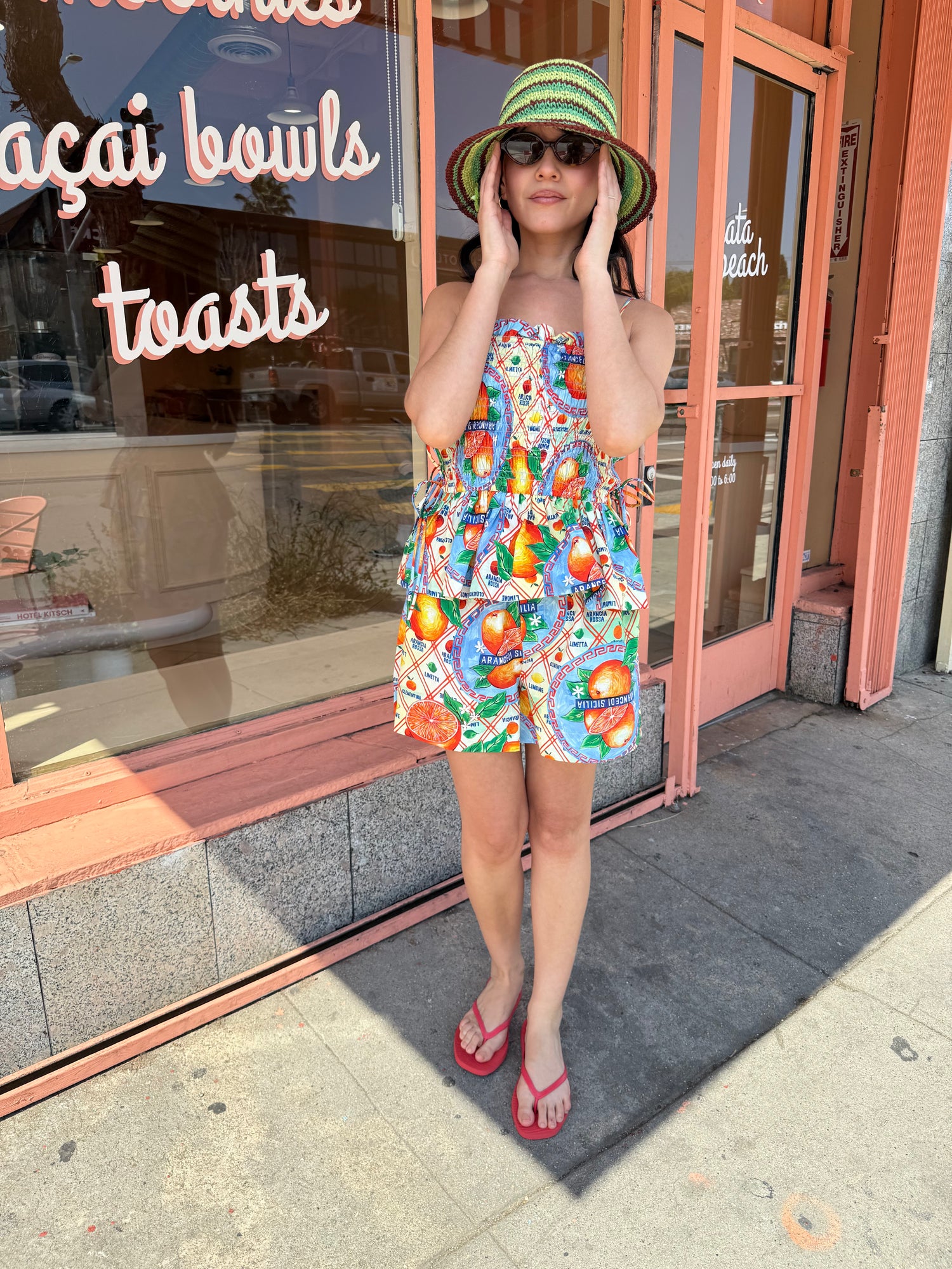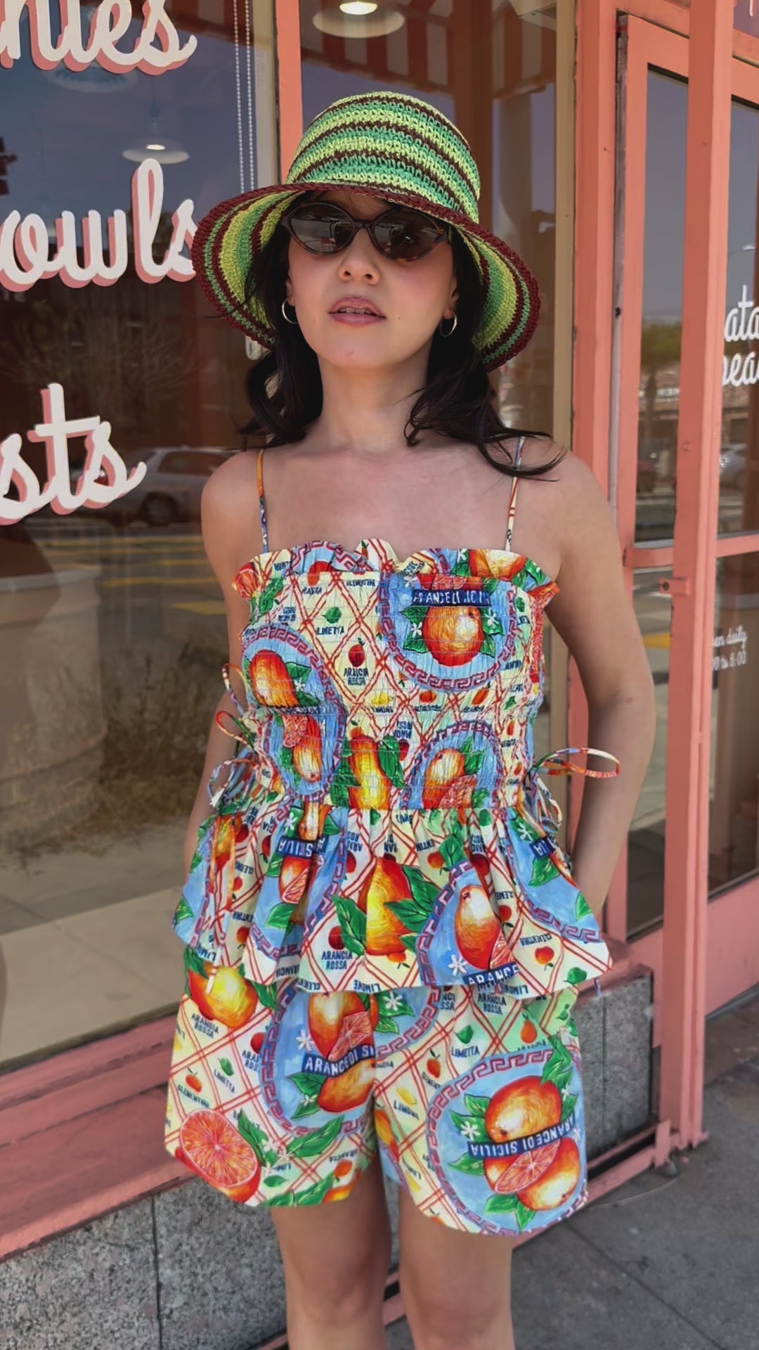 Pull On Shorts featuring Damson Madder’s custom orange wrappers print, an elasticated waistband with an adjustable tie, and front and back pockets. Made from 100% cotton for comfort and ease. Pair with the matching Marina Cami for a complete set.