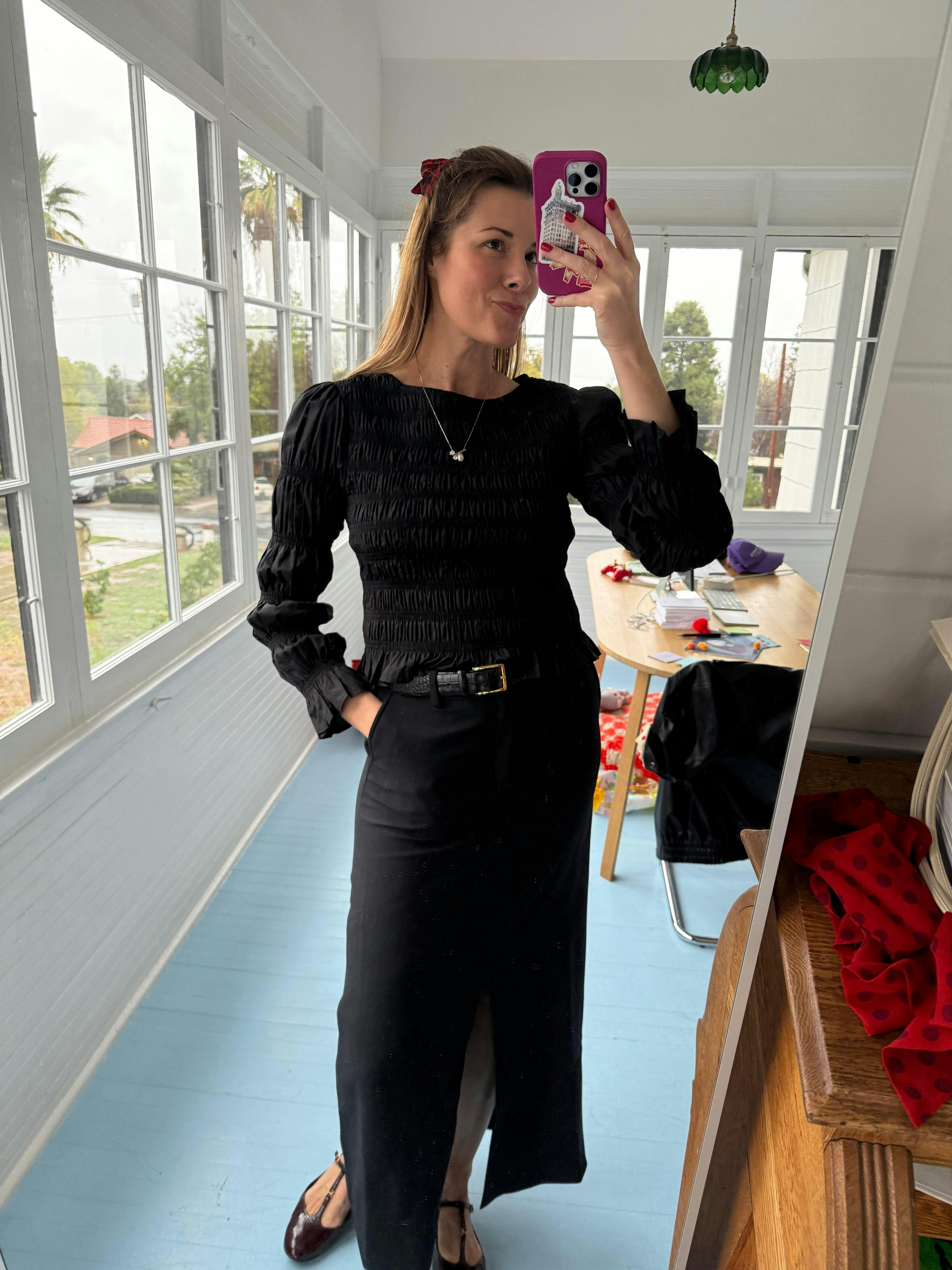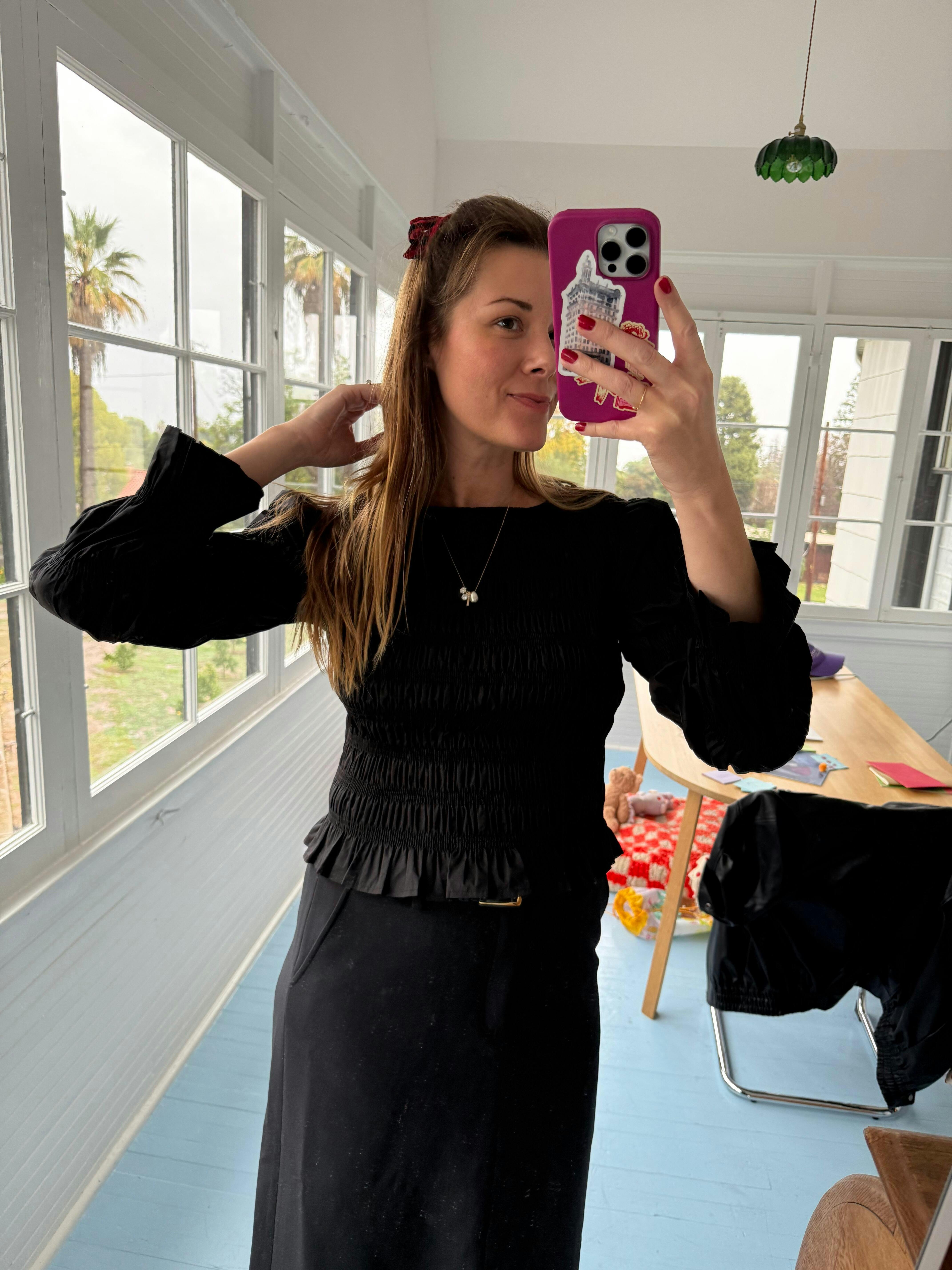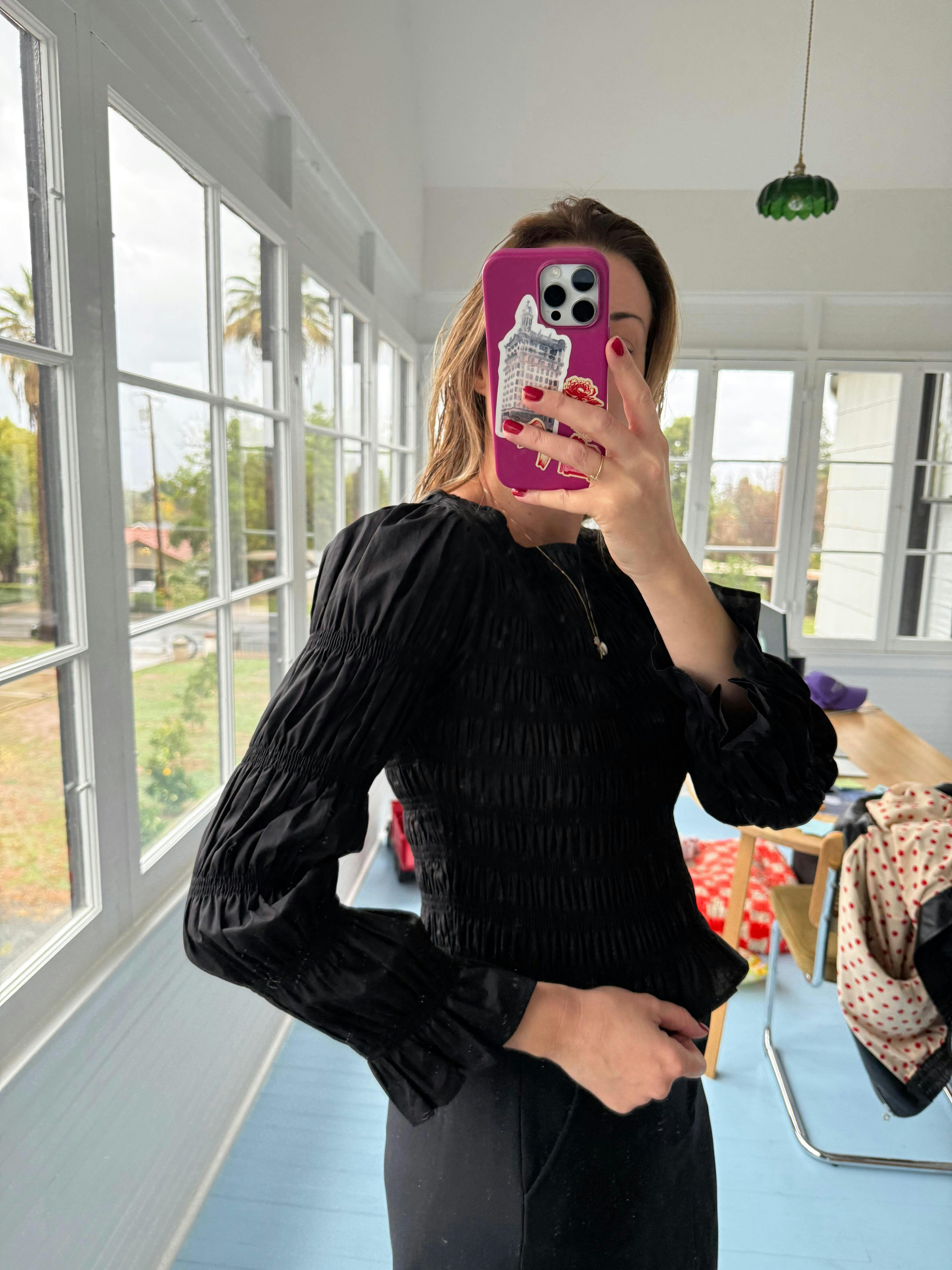 Rue Smocked Long Sleeve - Black - $118.00