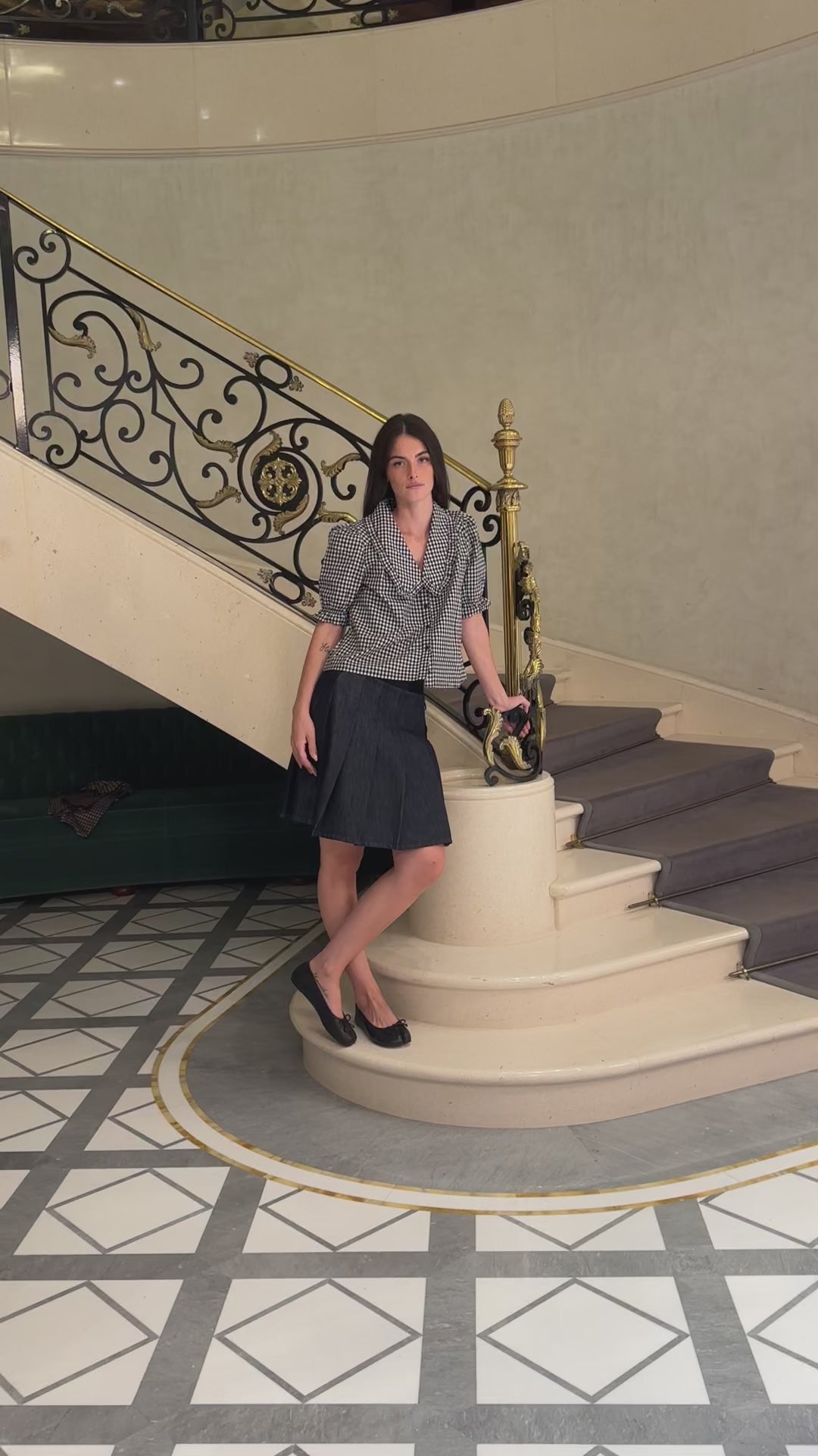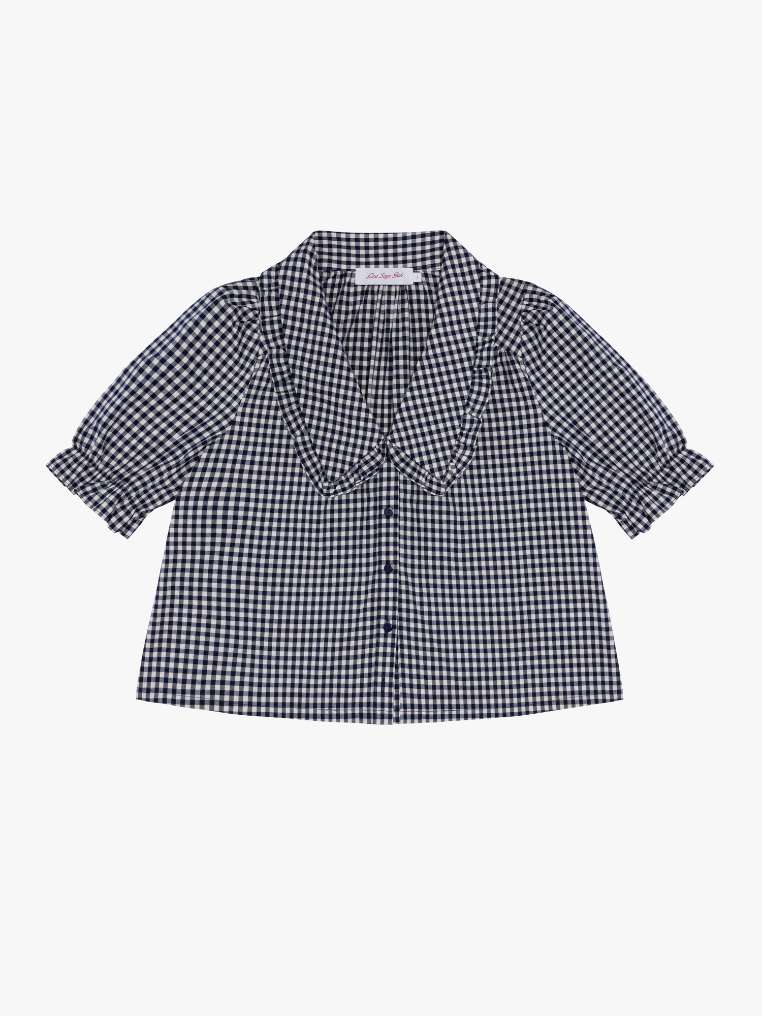 Introducing the new and improved Sam Top: A boxy linen button up featured in our signature Midnight Check print with a dramatic pointed collar design and an elasticated puff-sleeve for a comfortable fit.