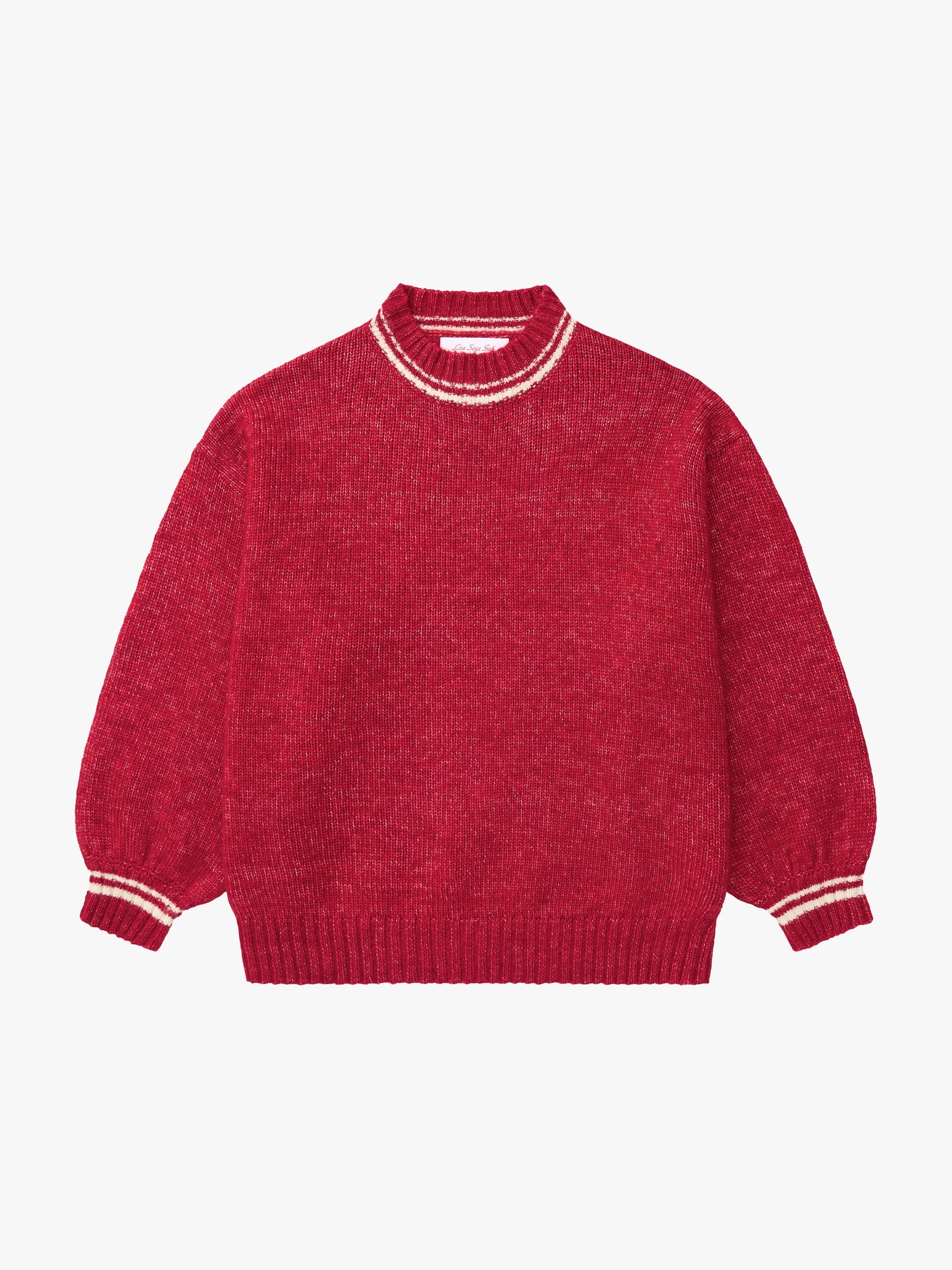 Meet the Shani Sweater—a boxy, oversized mockneck with a vintage-inspired fit. Made in a bold cherry red with a striped neckline and sleeves for an athletic touch.