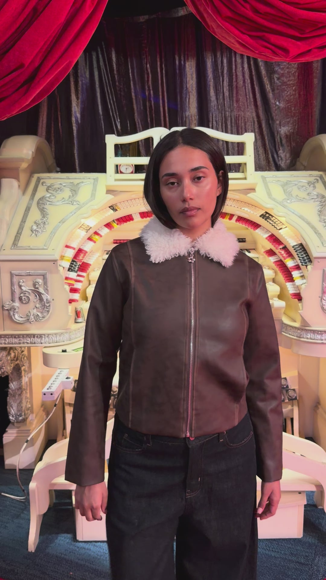 Introducing the Shyla Jacket in Washed Brown - the perfect combination of chic and edgy. With its sleek design, this jacket elevates a classic silhouette. The Shyla is a faux leather fitted jacket with a zip closure and side-seam pockets. Featured in a vintage-inspired faux leather fabric with a faux fur collar.