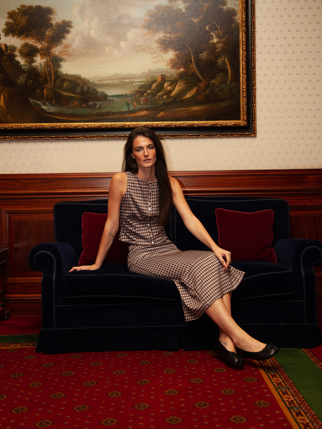 Introducing our fan favorite tank, the Summer Top: a sleeveless blouse made in our signature Cocoa Plaid print. It has a round neckline and shell buttons down the front. The bodice features darts at each side for a more snug and structured fit. We recommend sizing up if you are between sizes.