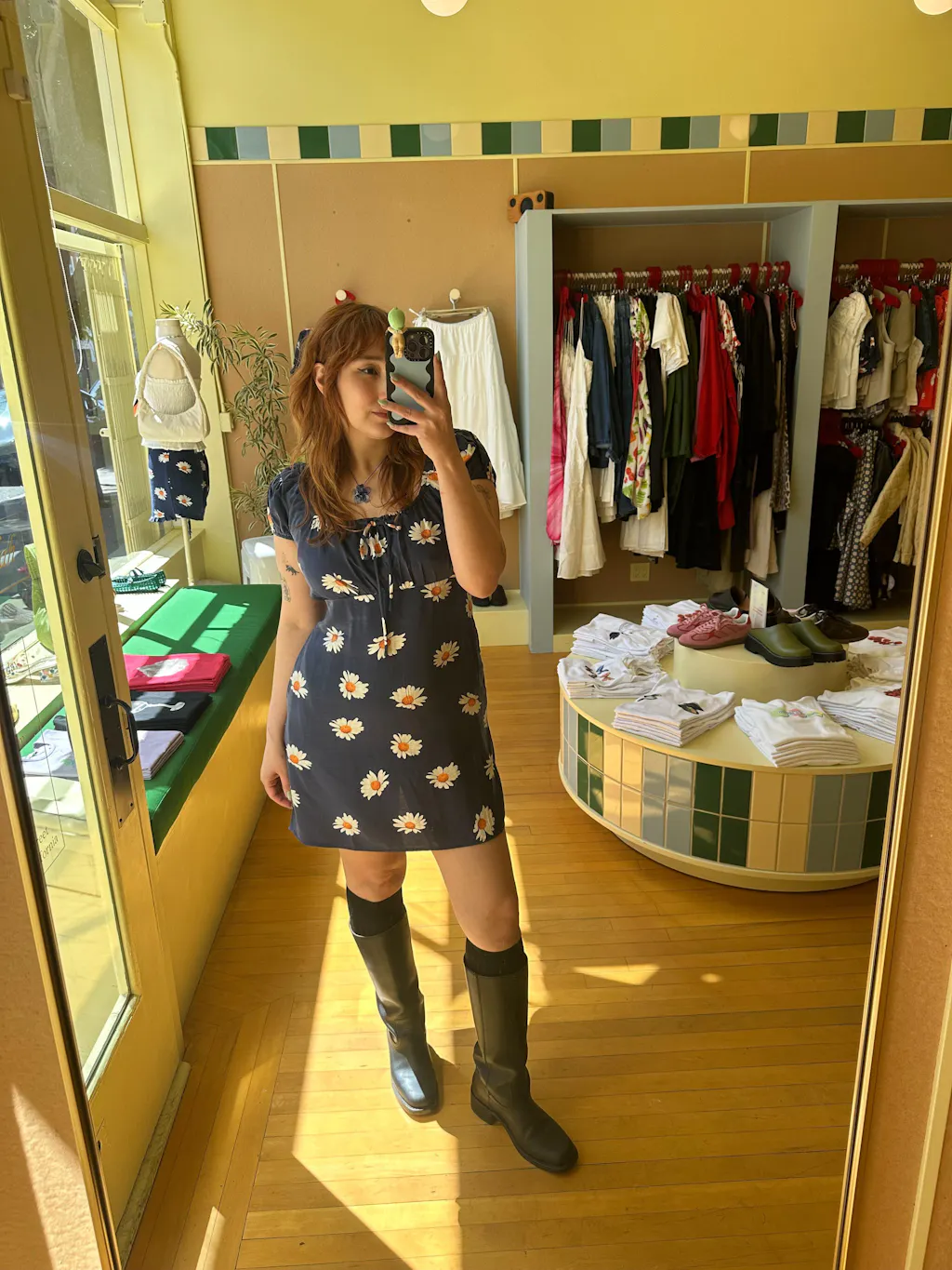 I think I had this dress as a child in the 90's, and I'm so happy to have a grown up version! I am an 8/10 and the L fit best. I tried the XL too and it made it nice and flowy in the hips, but then it was too loose in the top. The neckline/tie is adjustable so you can wear it off the shoulder if you like too! The daisy print is just too perfect, I couldn't pass it up!