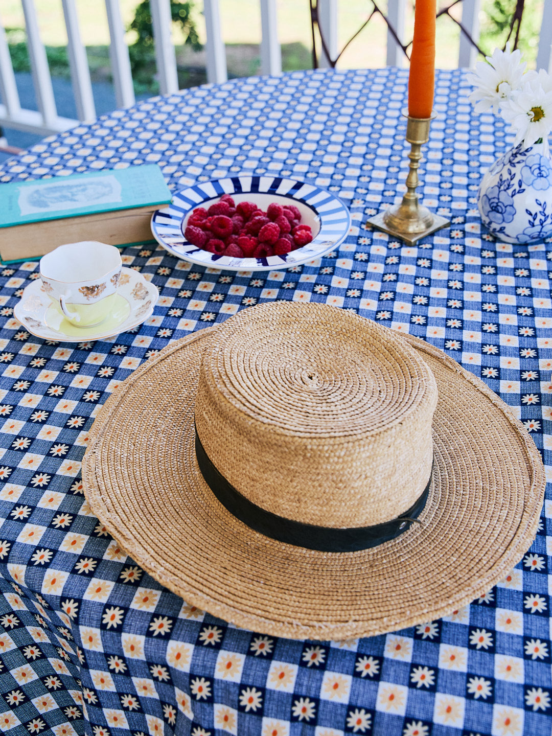 Tablecloth featured in our signature Navy Daisy Gingham print.