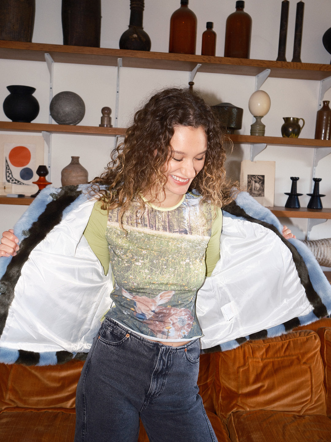 Their faux fur jackets are cruelty free, which means that no animal suffered for one of their fabulous fluffy pieces. Each one of their faux furs has a removable “Free From Fur” patch on the sleeve to be worn with pride. The collection has now organically extended to a new range of “Free From Wool” knits and “Free From Feather” Puffers.