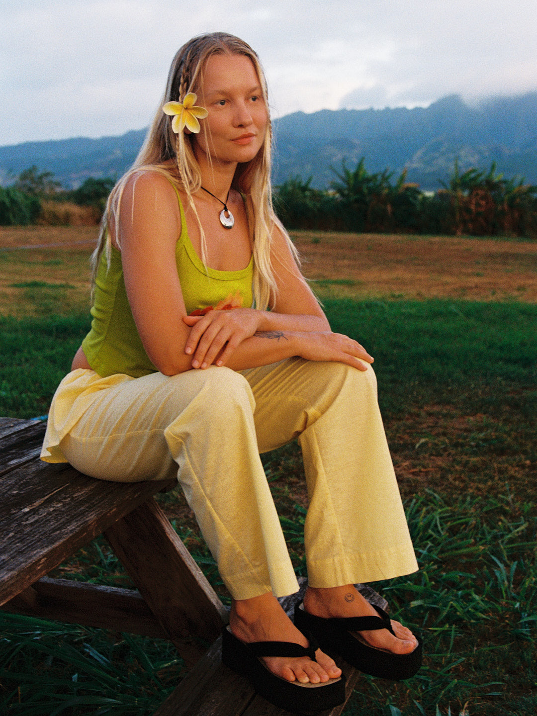 Platform foam sandals with a bamboo sole for that perfect early 2000's feel. Whole sizes only